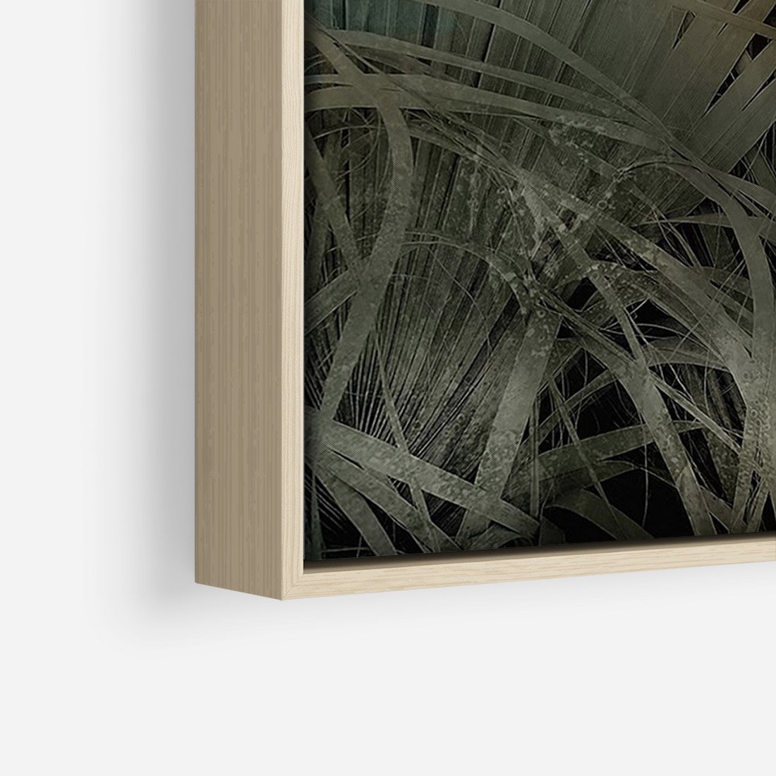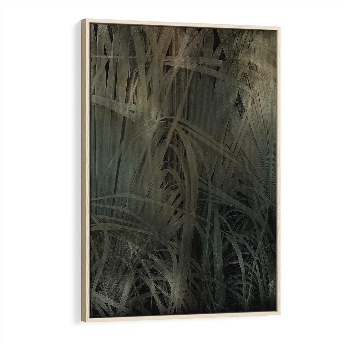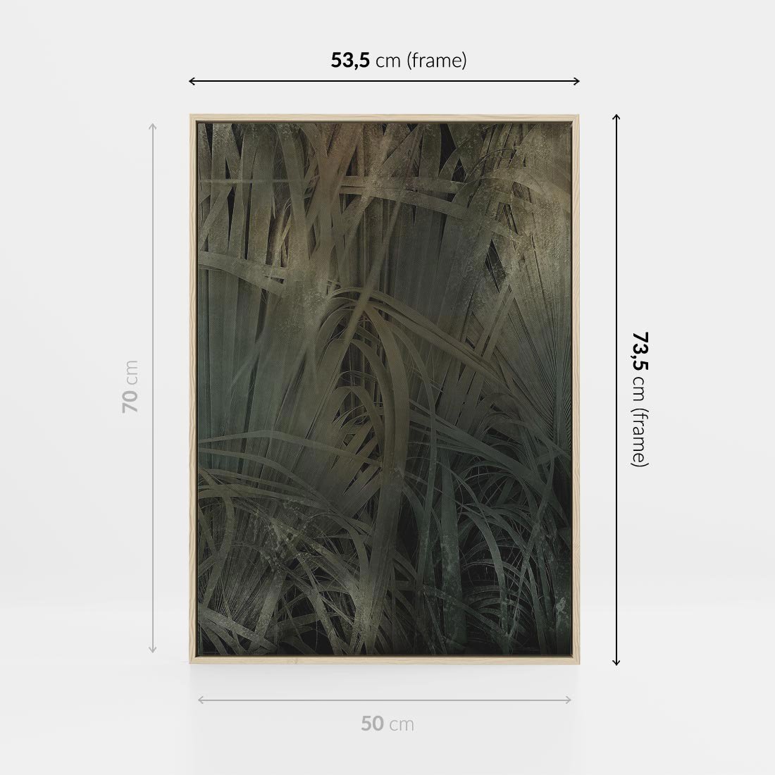 Obraz w ramie 50x70 - Światło w mroku duszy - liście traw, mroczny klimat - rama drewno
