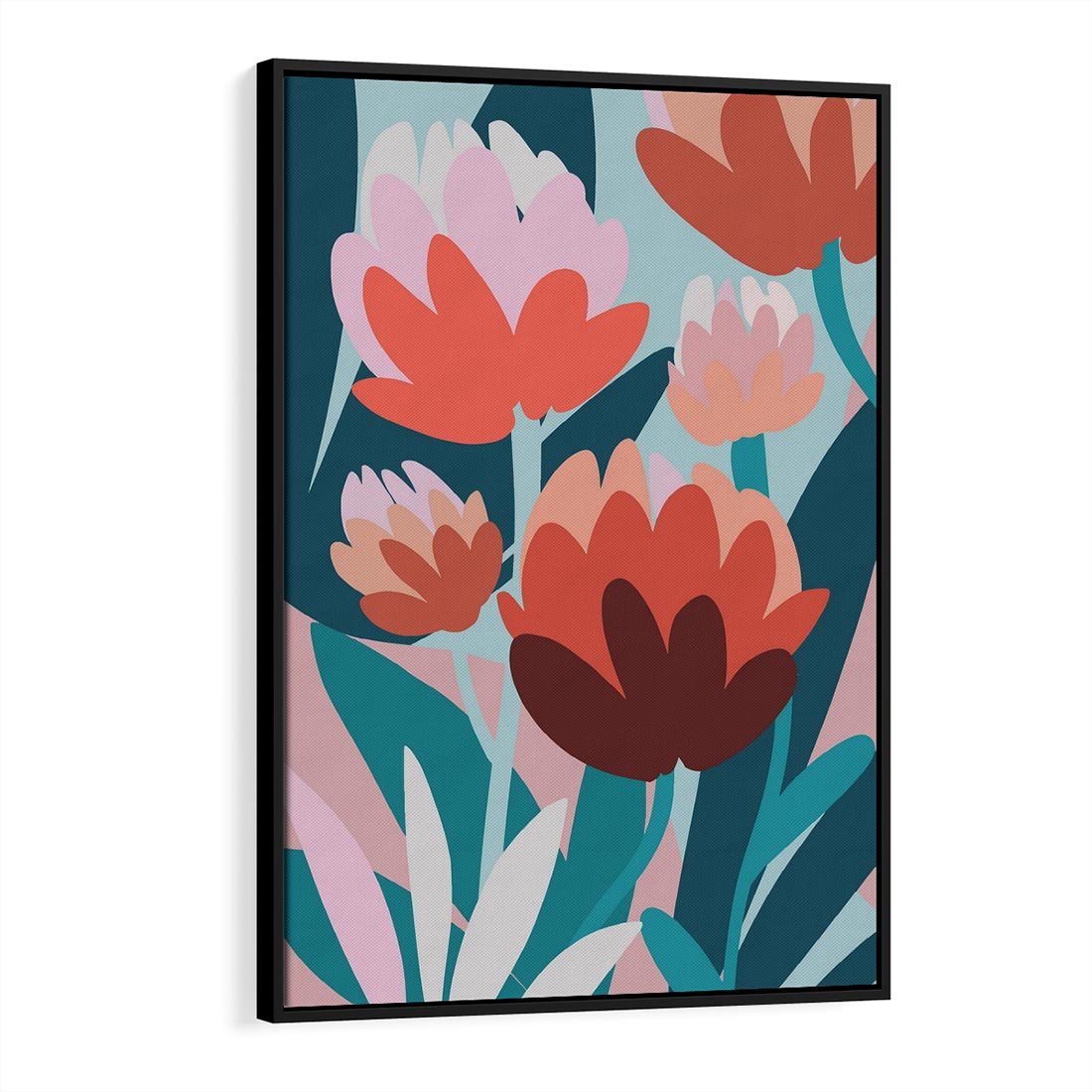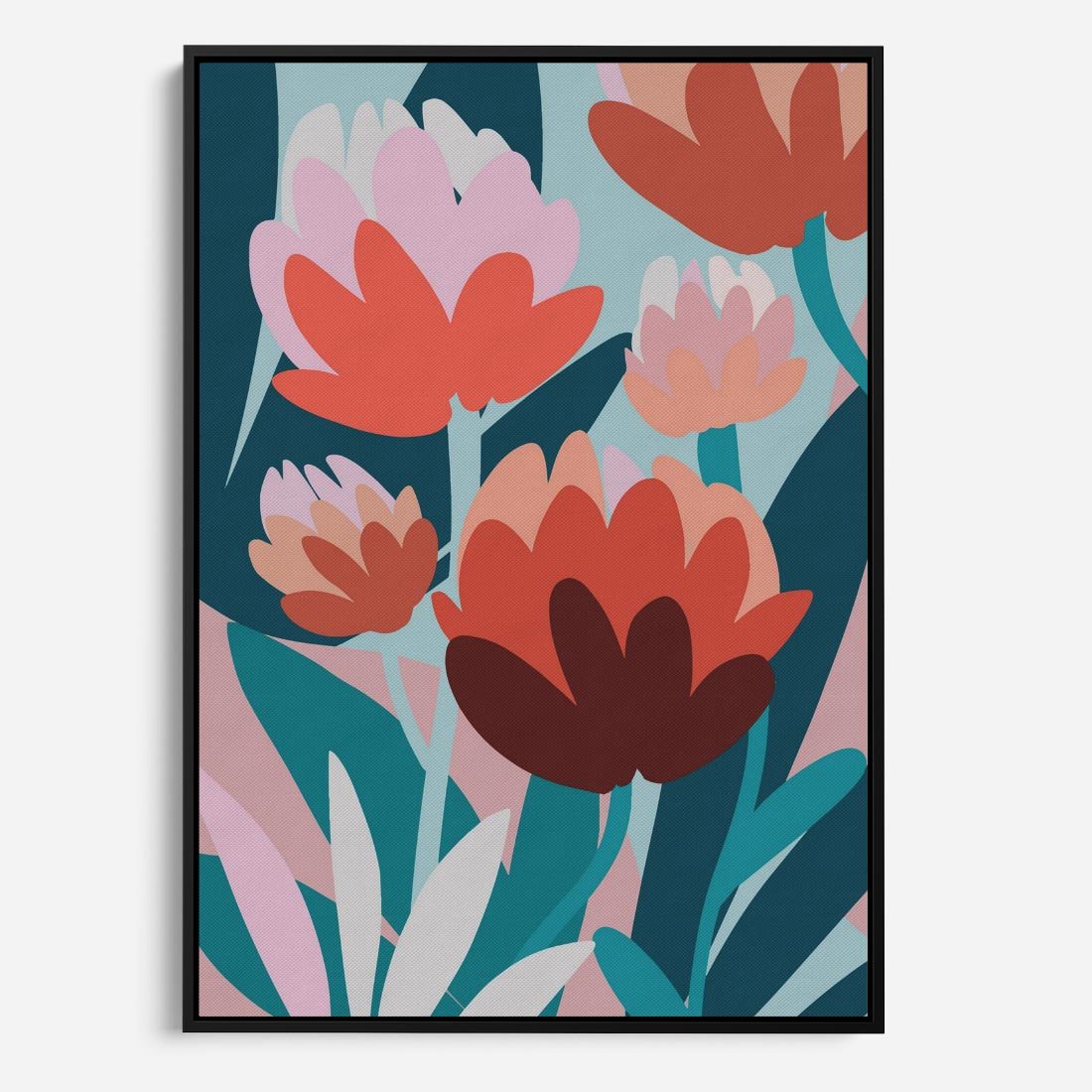 Obraz w ramie 50x70 - Symfonia Kwiatów - abstrakcyjna kompozycja kwiatowych form, kolor zgaszone - rama czarna