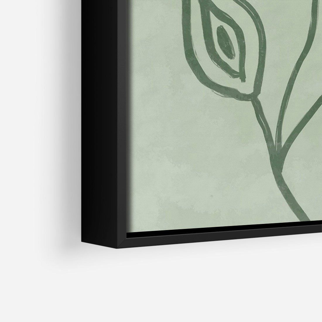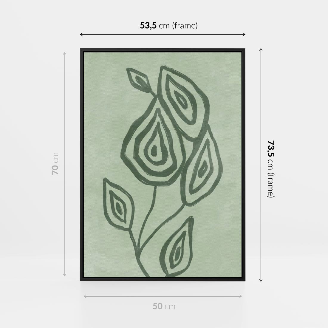 Obraz w ramie 50x70 - Szmaragdowy Oddech - abstrakcyjne delikatne zielone linie, podobne do gałęzi kwiatów - rama czarna