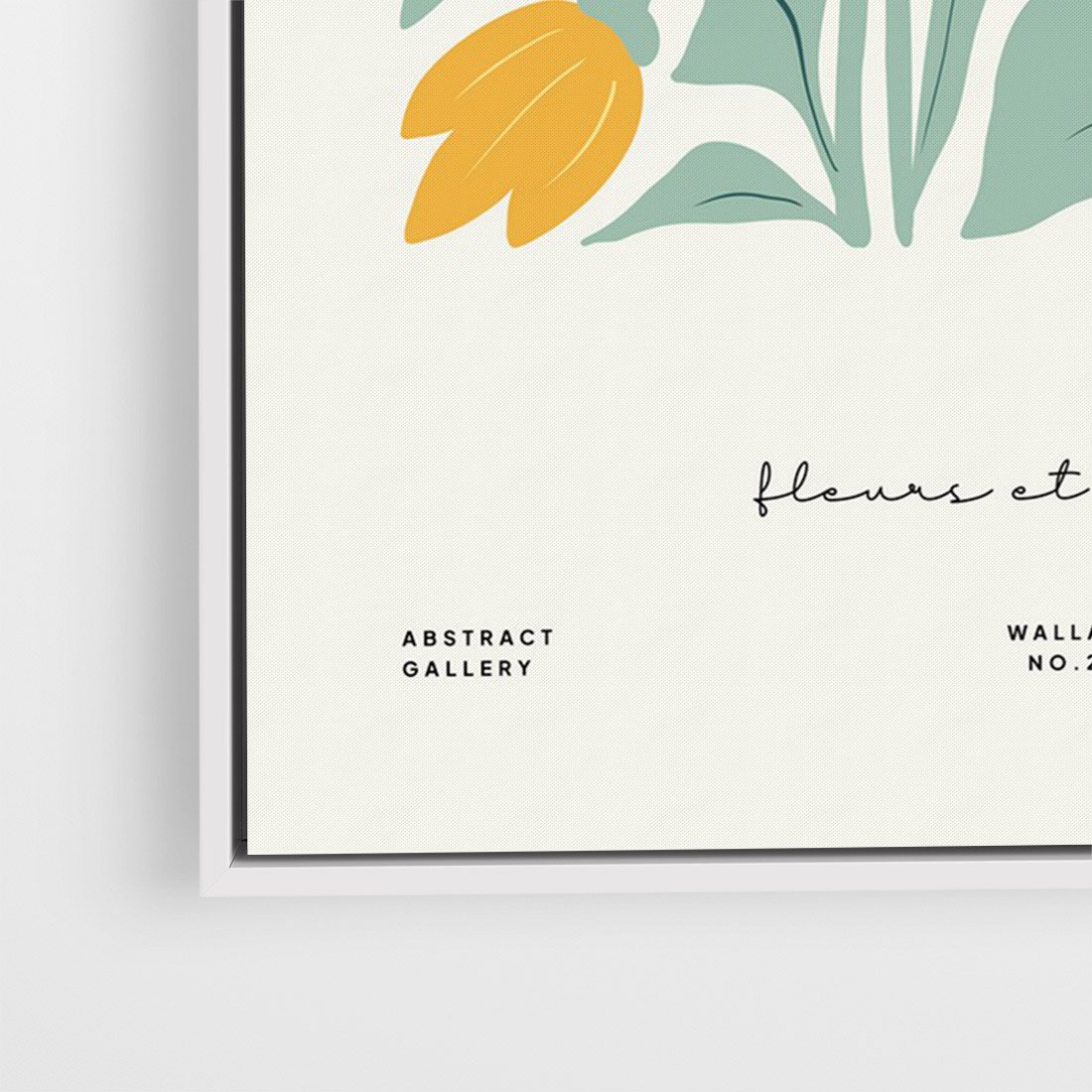 Ten plakat w nowoczesnej abstrakcji przywołuje piękno kwiatów w pastelowych tonach, w harmonii z delikatną typografią. Kompozycja tworzy subtelne i spokojne wrażenie, zachęcając do odkrywania piękna natury.