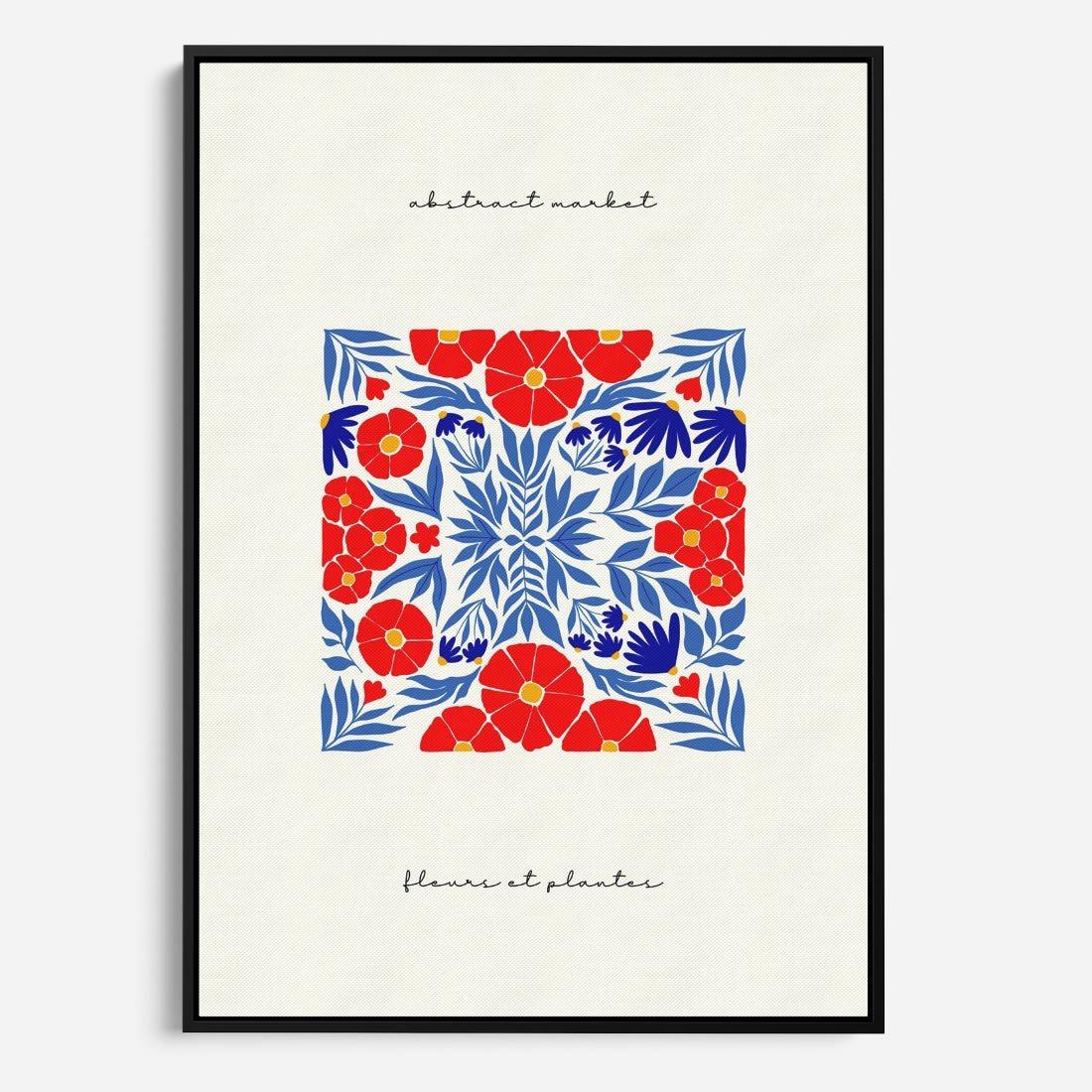 Obraz w ramie 50x70 - Tajemnicza Droga - nowoczesna kwiatowa kompozycja, czerwony i niebieski - rama czarna