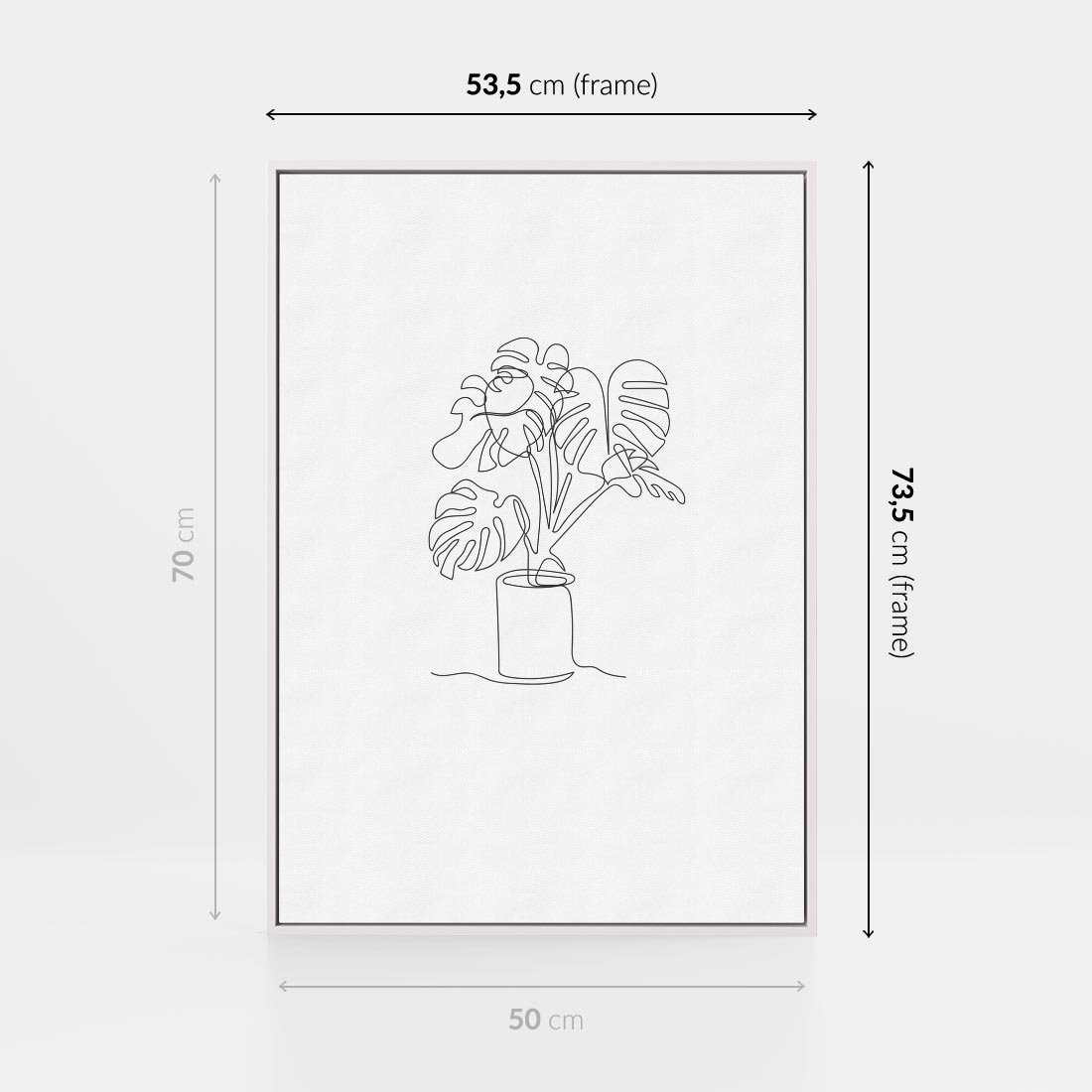 Obraz w ramie 50x70 - Tajemnicza Harmonia - sztuka one line, monstera - rama biała