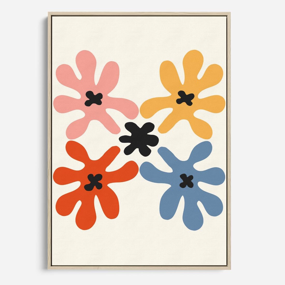 Ten minimalistyczny obraz przedstawia abstrakcyjne wielokolorowe kwiaty o dziwnych, intrygujących formach. Wykorzystując minimalizm, tworzy unikalny efekt wizualny, który ożywi i urozmaici każde wnętrze.