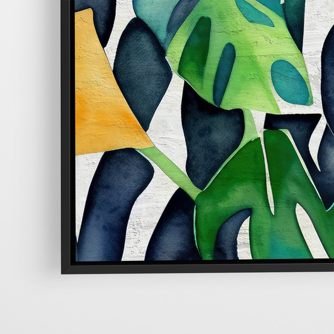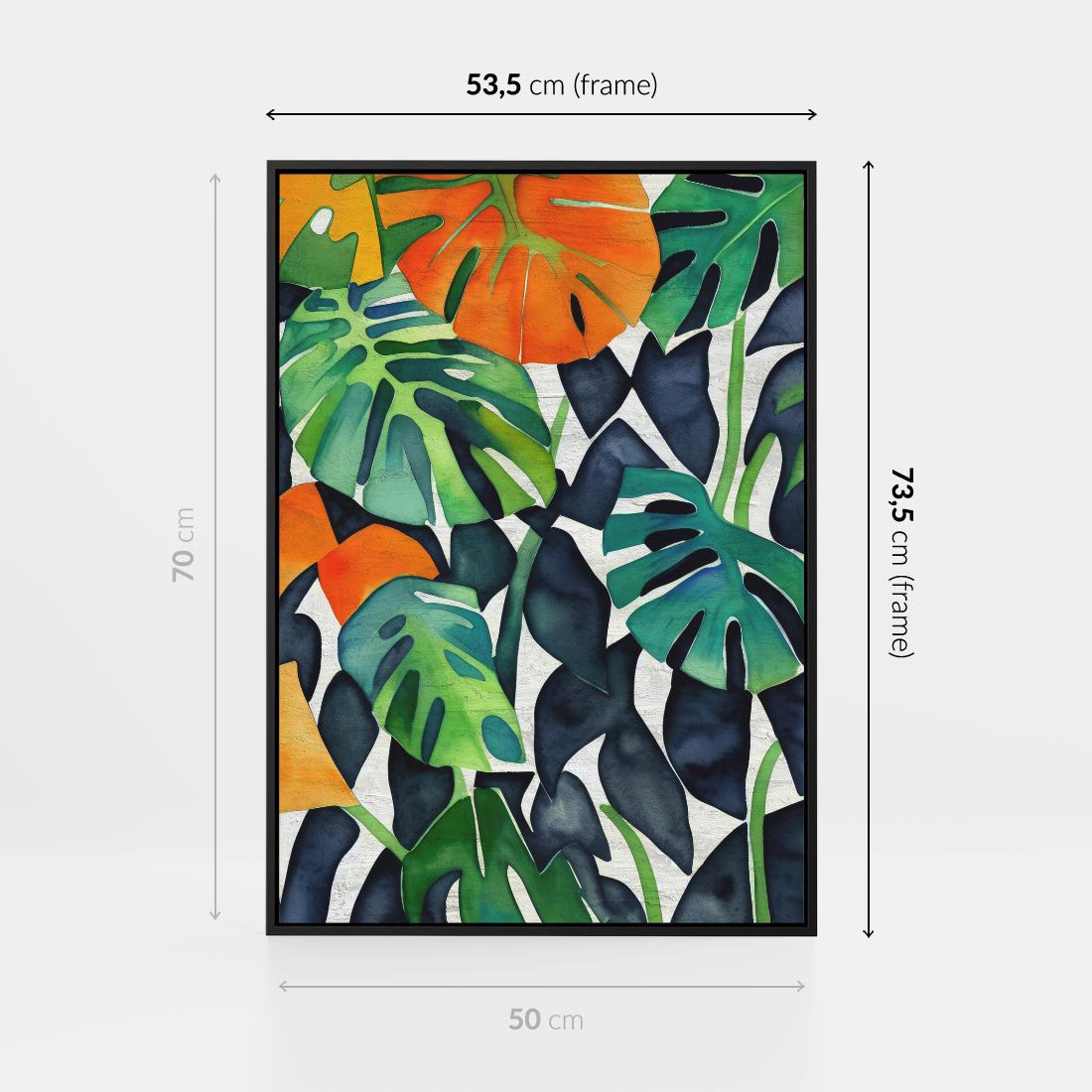 Obraz w ramie 50x70 - Tropikalne Pragnienia - akwarela, liście tropikalne - rama czarna