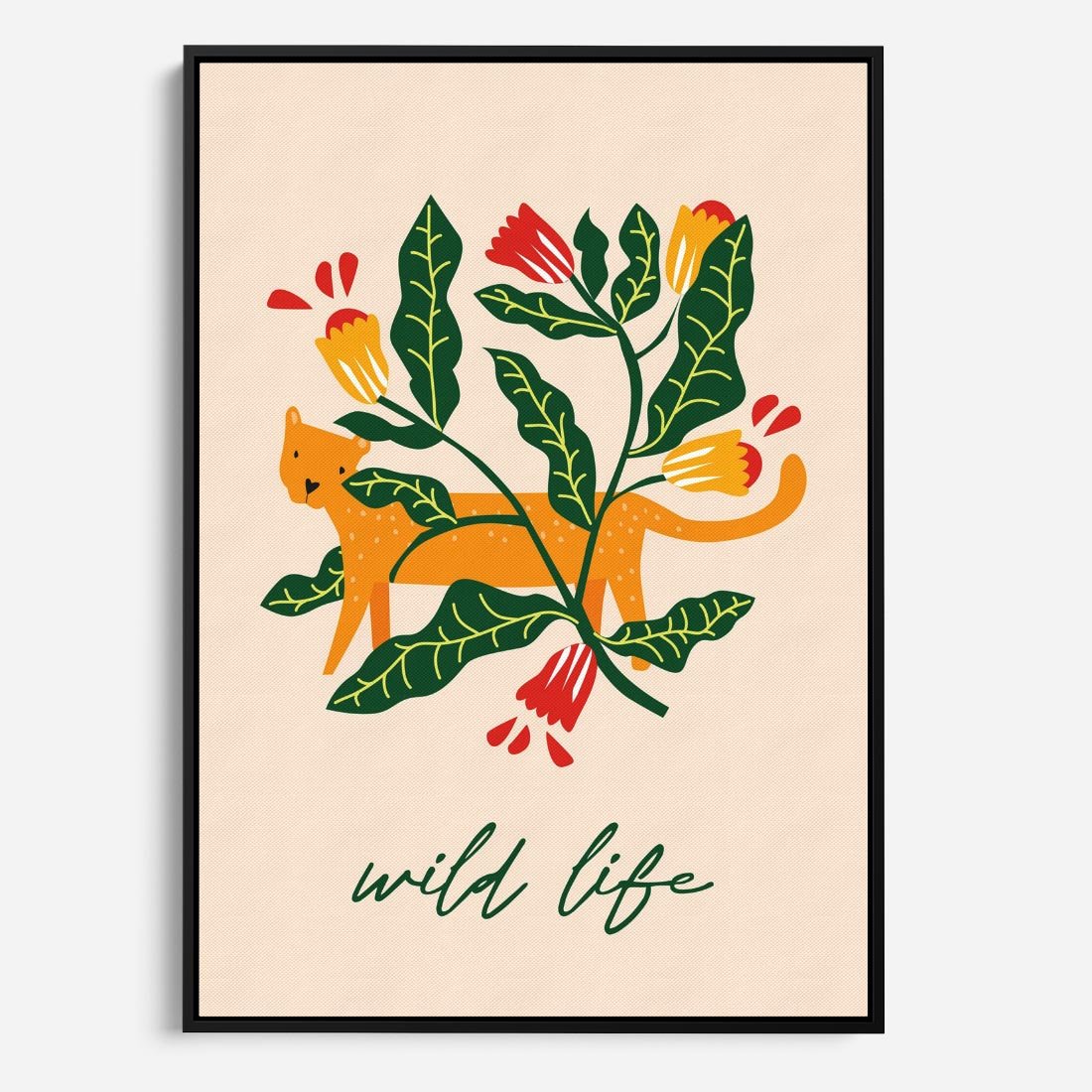 Obraz w ramie 50x70 - Tygrys w Kwiatach - tygrys, plakat - rama czarna