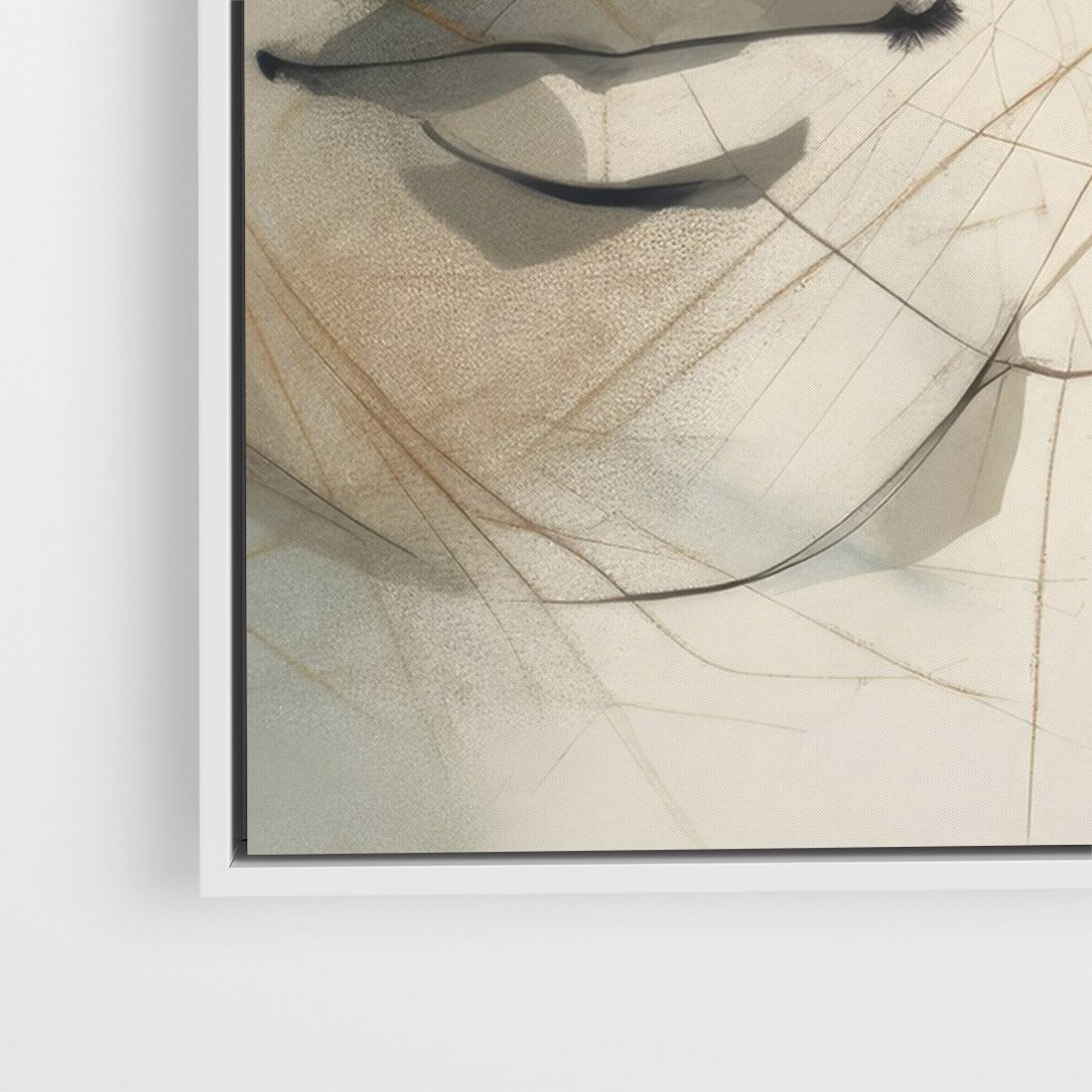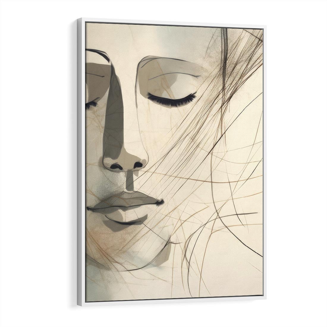 Ten obraz przedstawia twarz kobiety z zamkniętymi oczami wykonaną techniką akwareli. Szkic w neutralnych beżowych kolorach dodaje kompozycji delikatności i subtelnego piękna. Obraz emanuje spokojem i elegancją, przenosząc widza w refleksyjny nastrój. To artystyczne dzieło doskonale pasuje do nowoczesnych wnętrz, nadając im wyjątkowego charakteru.