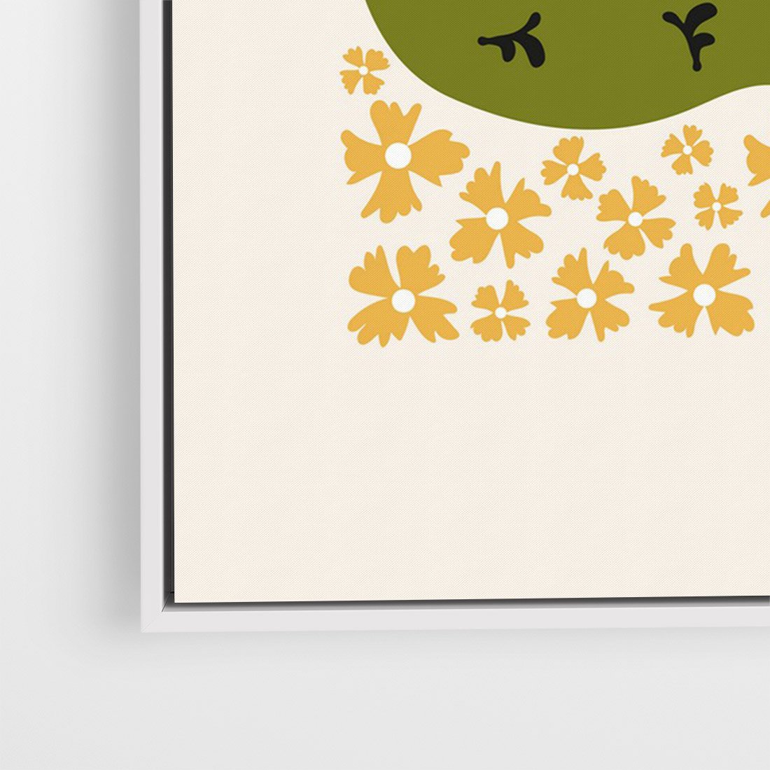 Ten nowoczesny plakat przedstawia minimalistyczną kompozycję kobiety otoczonej delikatnymi kwiatami. Sztuka ta łączy wyrazistość i prostotę, tworząc spokojny i inspirujący obraz, który zaprasza do refleksji i cieszenia się pięknem natury w harmonii z nowoczesnym stylem.