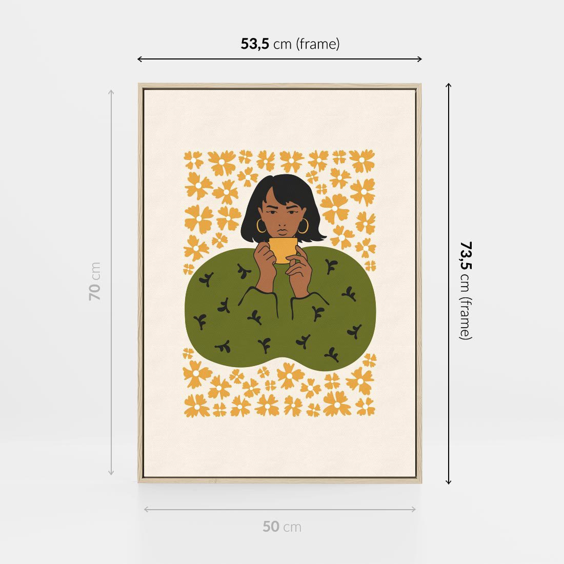 Obraz w ramie 50x70 - Wewnętrzne Fale - nowoczesny plakat, kobieta otoczona liśćmi - rama drewno