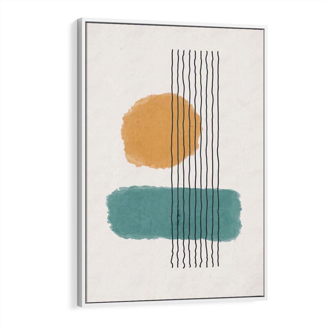 Twórczy plakat przedstawia abstrakcyjne akwarelowe plamy w odważnych odcieniach turkusu i żółtego, zdobiące się nieregularnymi kreskami i dynamicznymi liniami. Minimalizm w nowoczesnej sztuce.