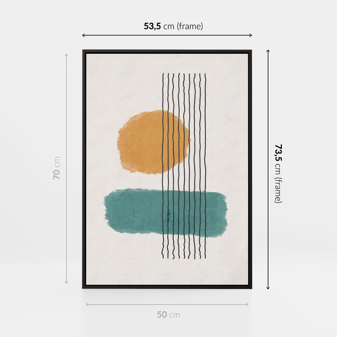 Obraz w ramie 50x70 - Wibracje Barw - abstrakcyjne akwarelowe plamy, nieregularne kreski - rama czarna