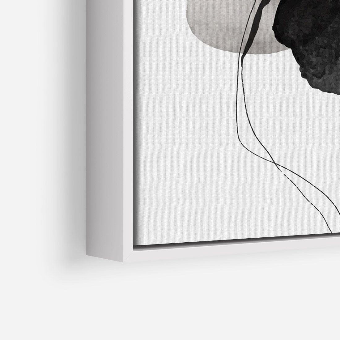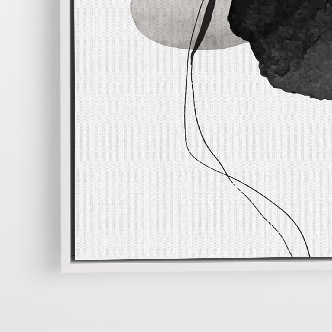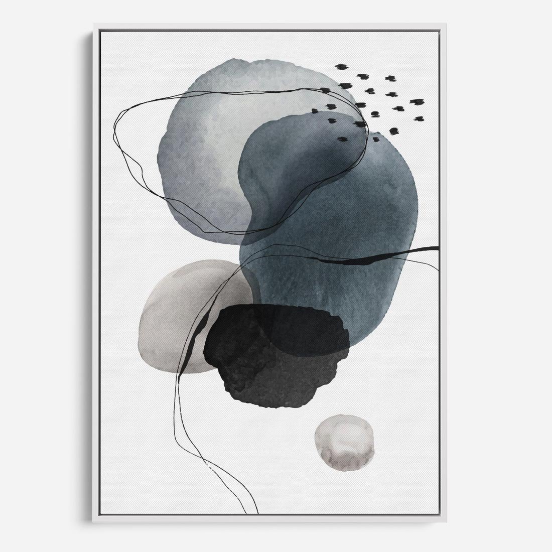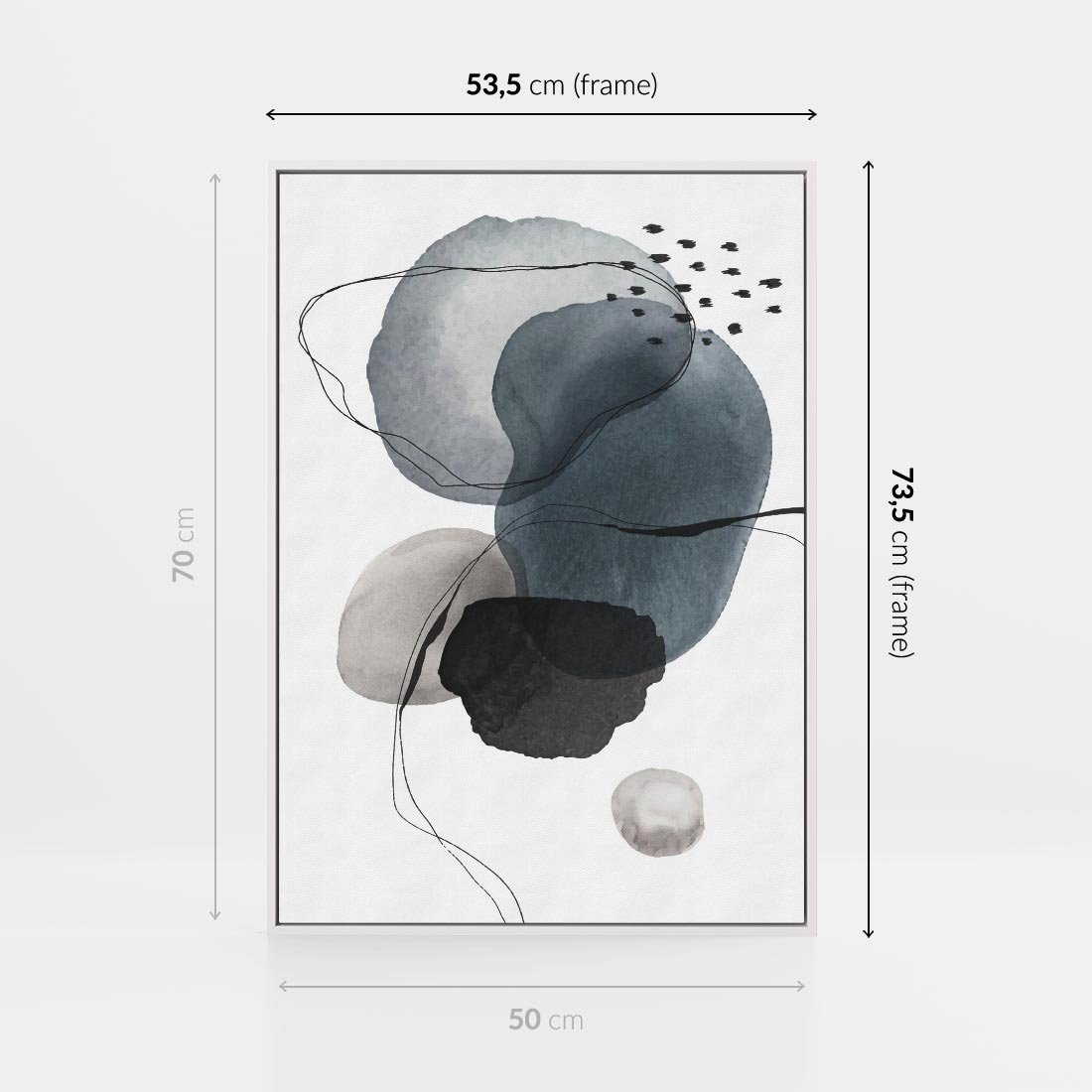 Obraz w ramie 50x70 - Wibracje Kształtów - abstrakcyjne plamy akwarelowe, czarny szkic - rama biała