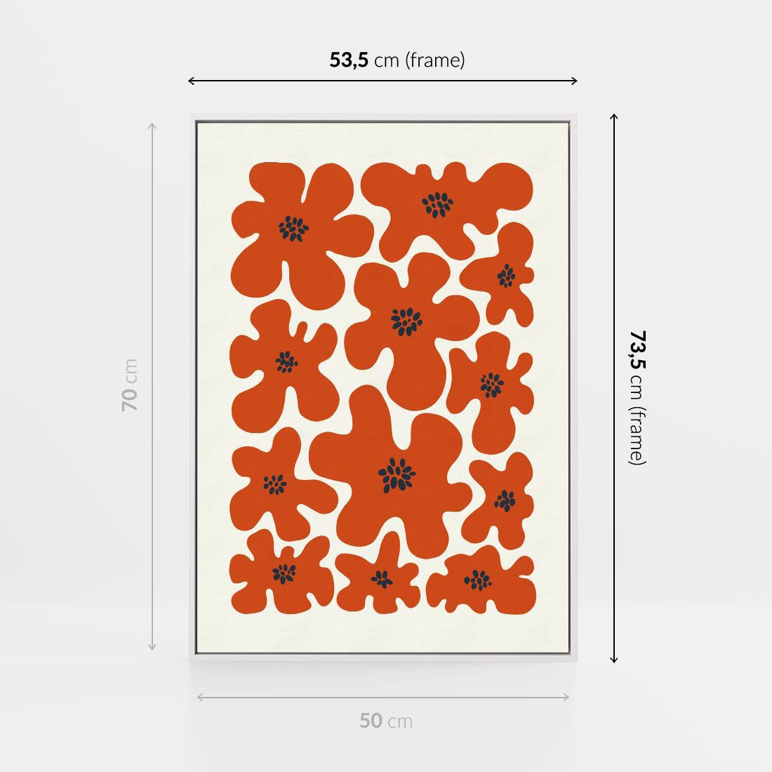 Obraz w ramie 50x70 - Wibracje Przestrzeni - abstrakcyjne czerwone kwiaty, kompozycja - rama biała