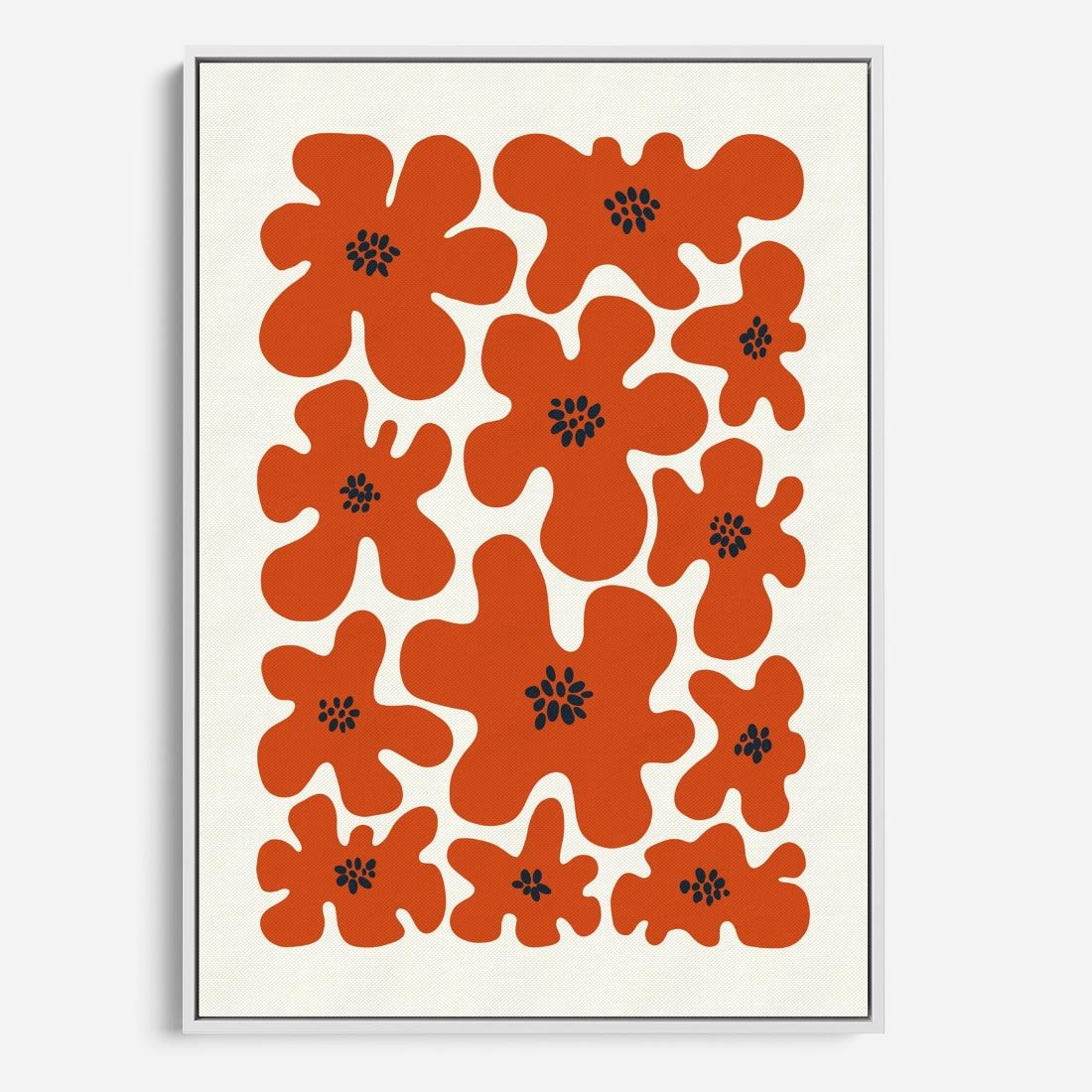 Ten nowoczesny plakat przedstawia abstrakcyjne czerwone kwiaty w unikalnej kompozycji. Sztuka ta bawi się formą i kolorem, tworząc dynamiczną wizję natury w nowoczesnym wydaniu.
