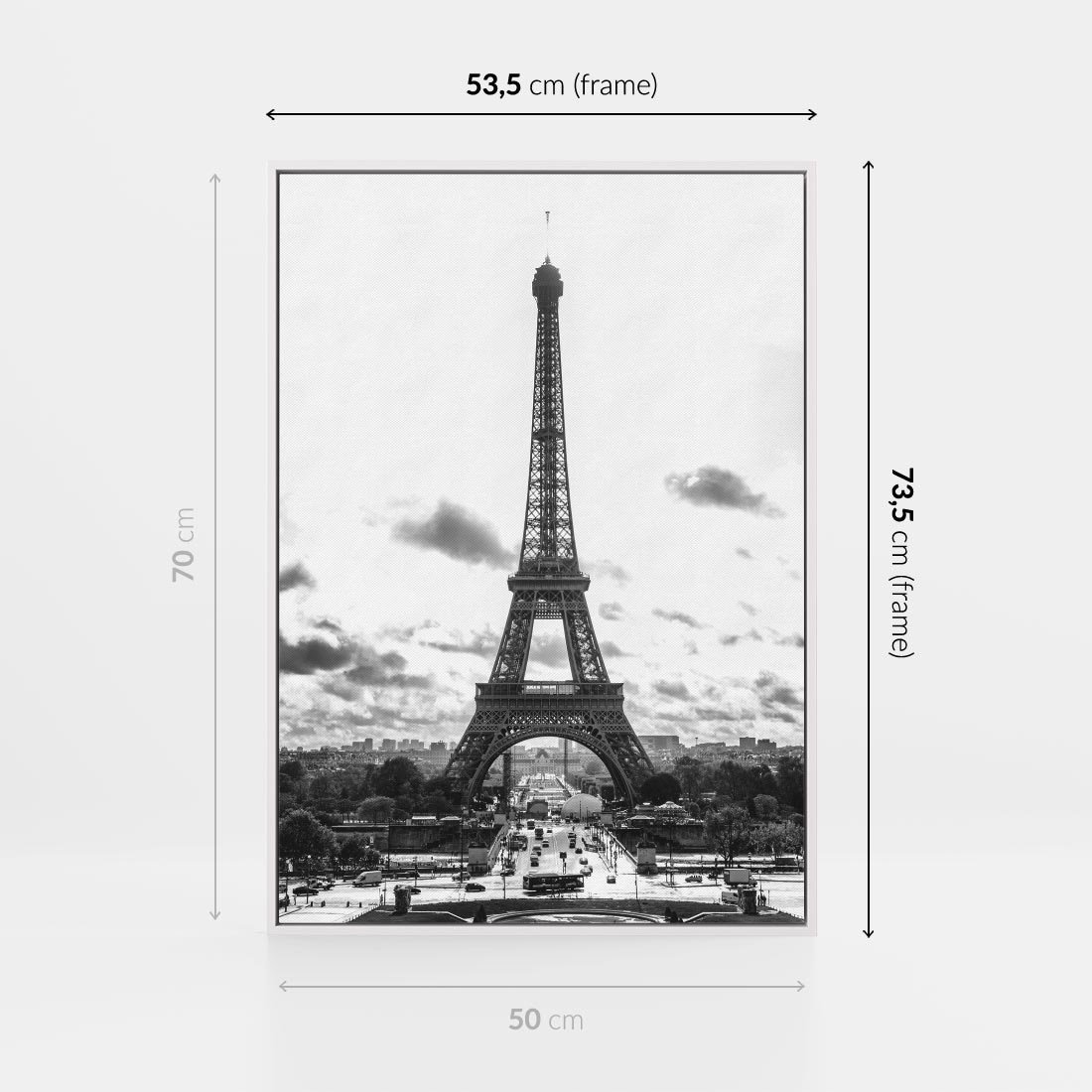 Obraz w ramie 50x70 - Wieża Eiffla - czarno białe zdjecie, wieża eiffla - rama biała