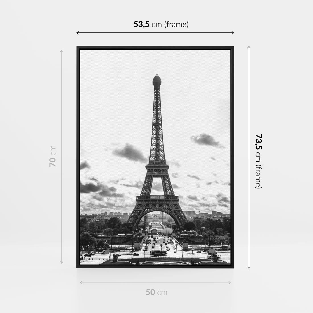 Obraz w ramie 50x70 - Wieża Eiffla - czarno białe zdjecie, wieża eiffla - rama czarna
