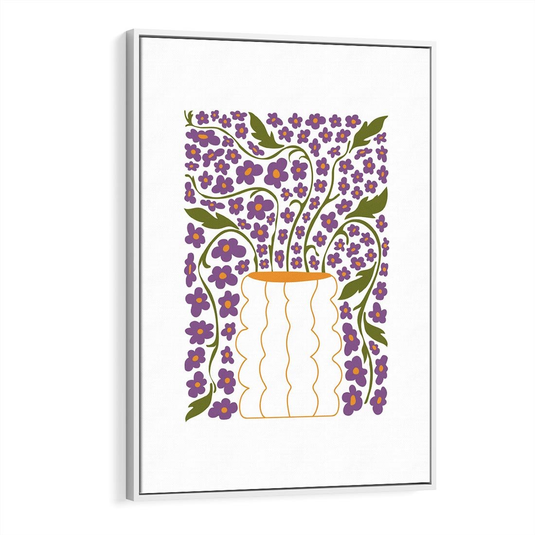 Ten plakat prezentuje minimalistyczną kompozycję kwiatów w wazonie na białym tle, wzbogaconą żywymi kolorami. Sztuka ta wprowadza do przestrzeni energię i witalność natury, tworząc jednocześnie spokojny i wyważony element dekoracyjny, który doskonale pasuje do różnych wnętrz i stylów.