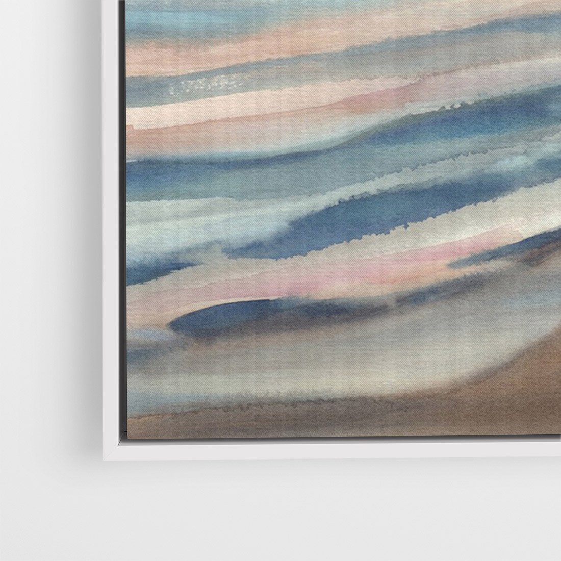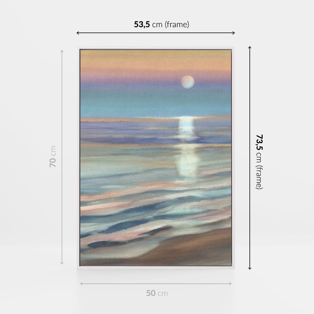 Obraz w ramie 50x70 - Witraże roziskrzonych myśli - akwarela, zamglony wschód słońca - rama biała