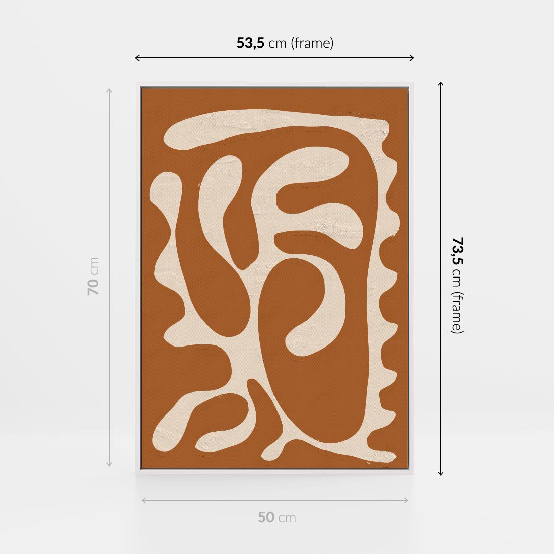 Ten abstrakcyjny obraz w formie plakatu prezentuje fascynujące i dziwne kształty, które kontrastują z ciepłym brązowym tłem. Kompozycja ta tworzy unikalną wizję sztuki abstrakcyjnej, pobudzając wyobraźnię i zachęcając do interpretacji.