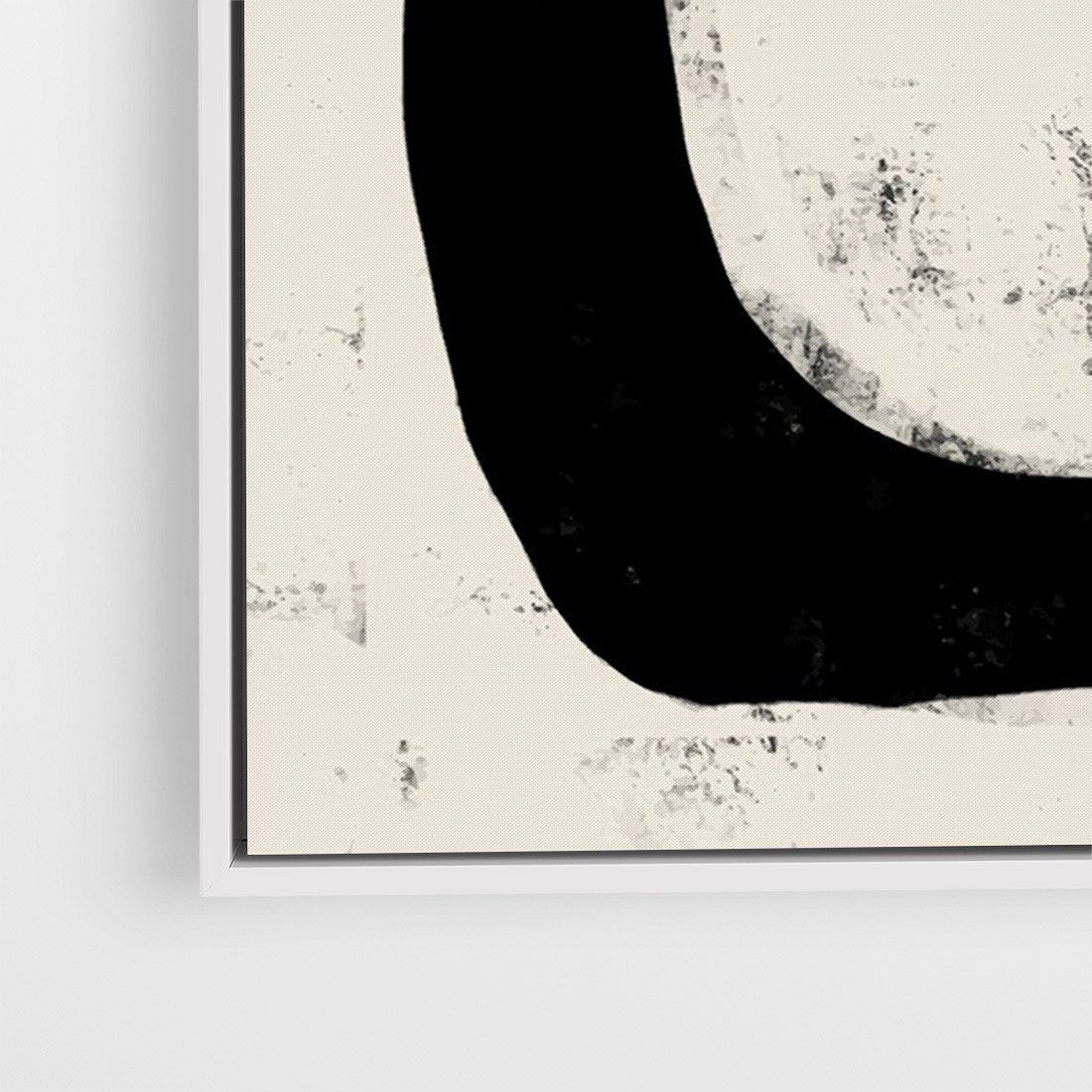 To abstrakcyjne dzieło sztuki w minimalistycznym stylu modern art wykorzystuje czarne koło, tworząc efekt dramatyzmu. Doskonale pasuje do loftowych wnętrz, dodając im nowoczesności i głębokiej atmosfery.