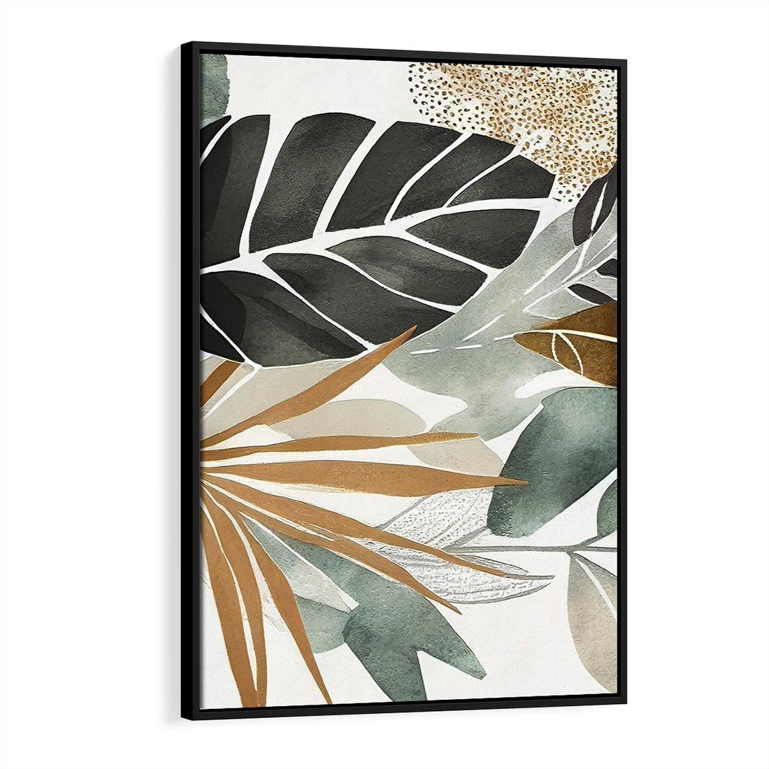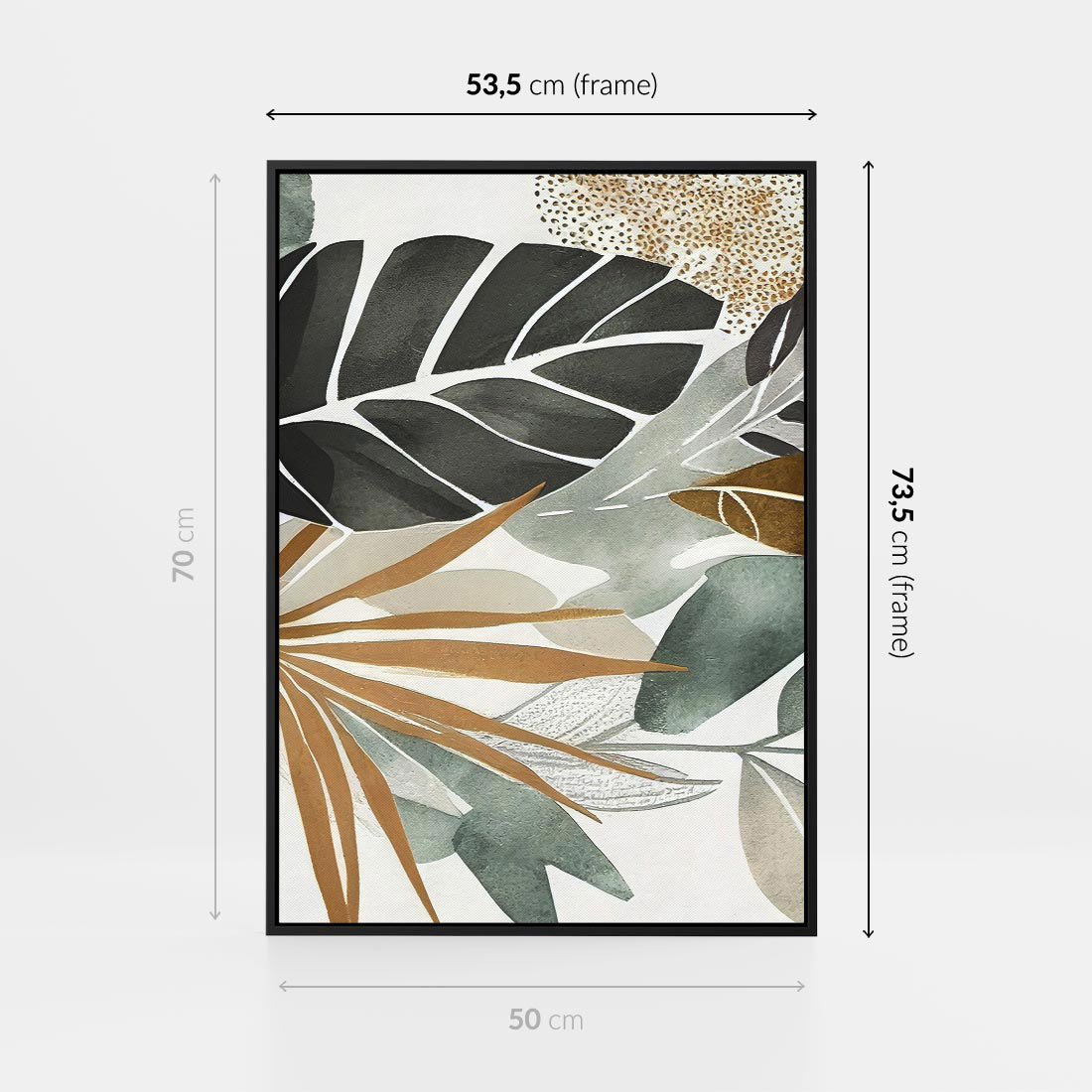 Obraz w ramie 50x70 - Współbrzmienie wewnętrznego ja - kompozycja z tropikalnych liści, stonowane kolory - rama czarna
