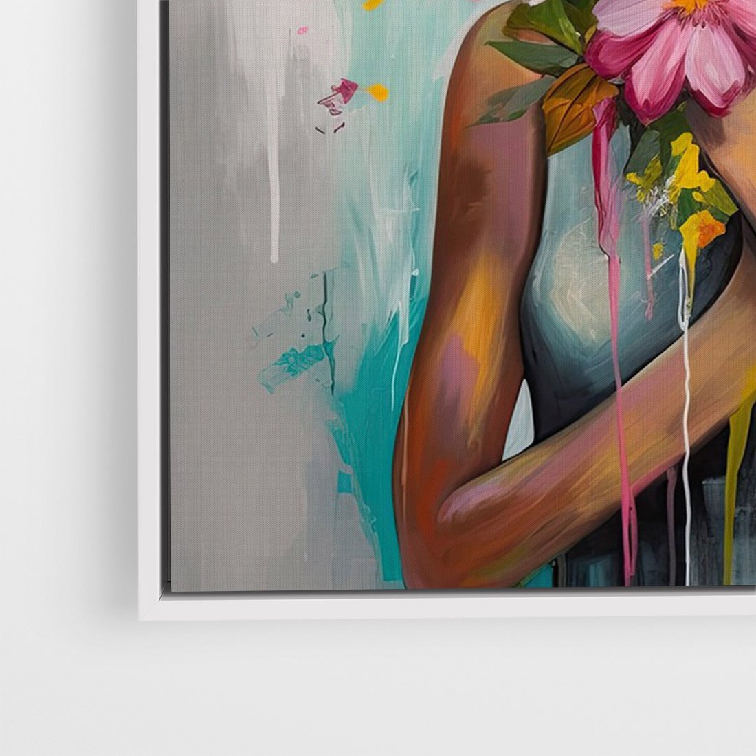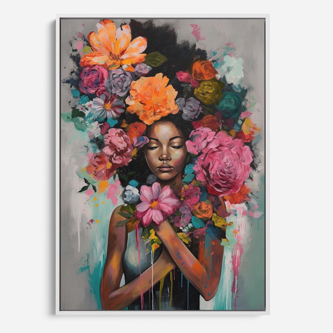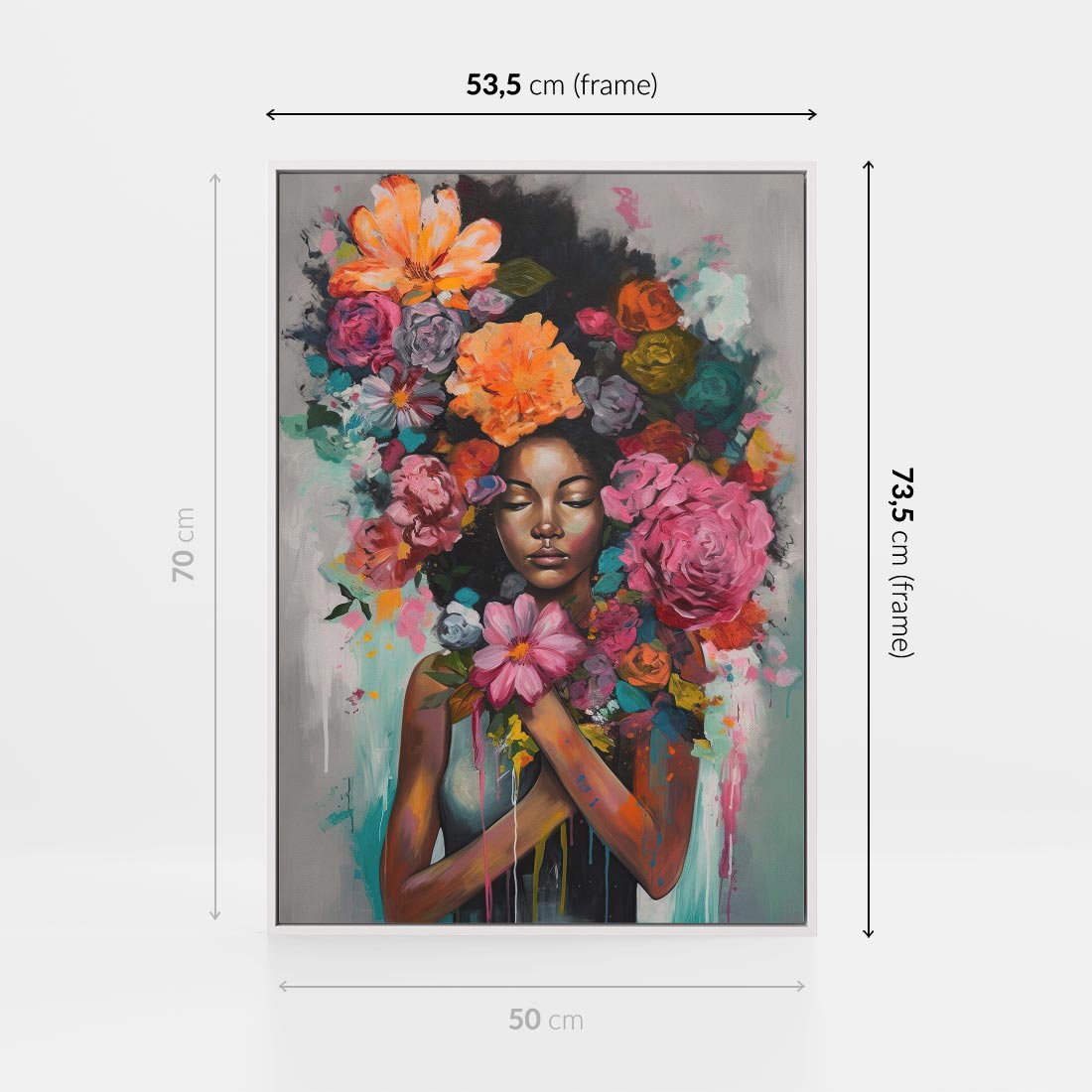 Obraz w ramie 50x70 - Z Głową w Kwiatach - obraz olejny, sztuka nowoczesna - rama biała