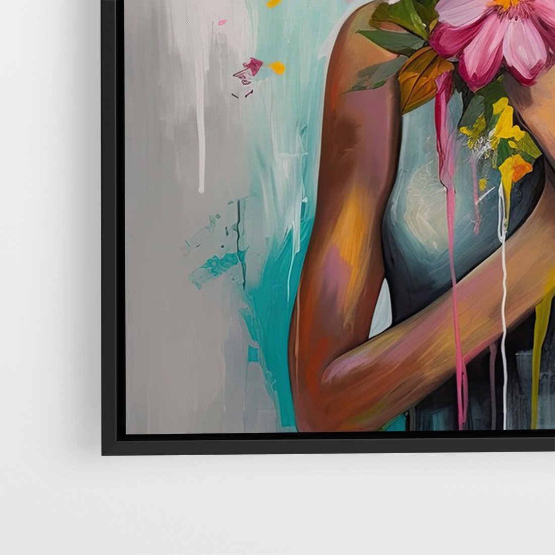 Obraz w ramie 50x70 - Z Głową w Kwiatach - obraz olejny, sztuka nowoczesna - rama czarna