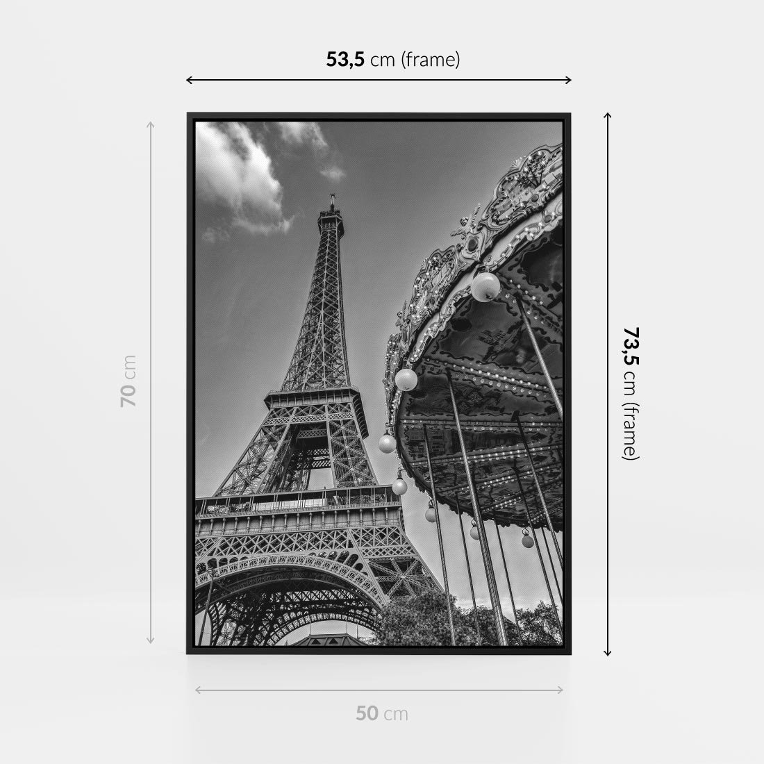 Obraz w ramie 50x70 - Zabawa w Paryżu - czarno białe zdjecie, wieża eiffla - rama czarna