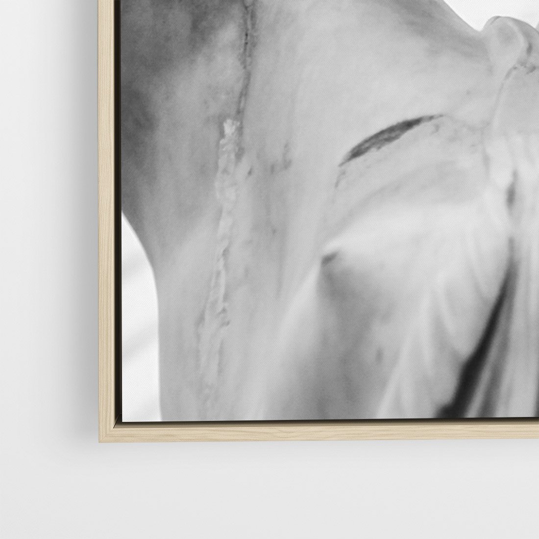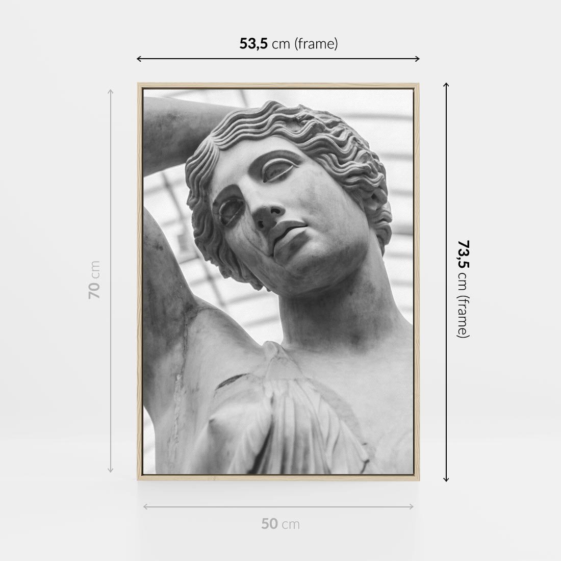 Obraz w ramie 50x70 - Zaklęta w Kamieniu - antyczna rzeźba kobiety na fotografii, czarno biała - rama drewno