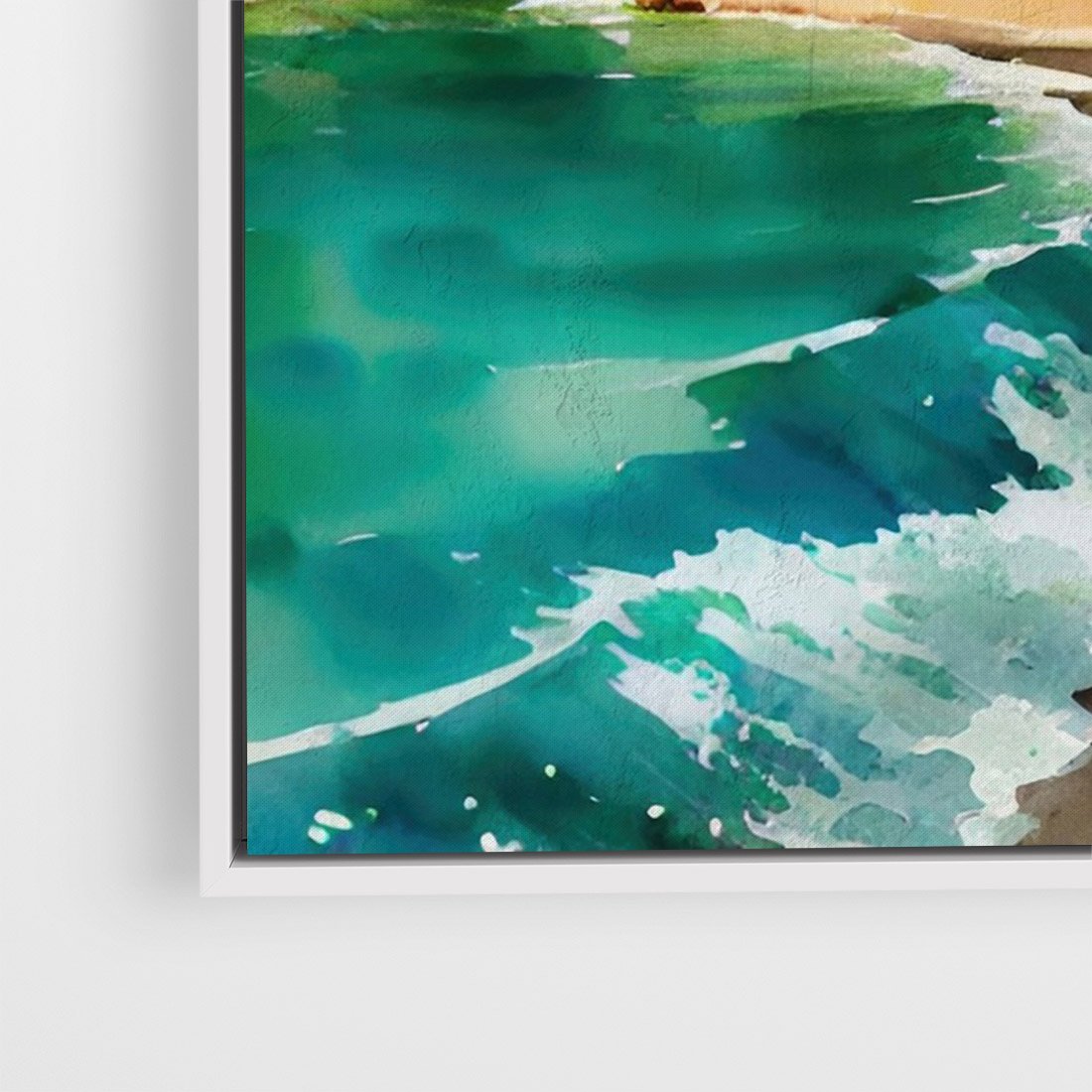 Obraz w ramie 50x70 - Zamieszkajmy Tu - akwarela, śródziemnomorski klimat - rama biała