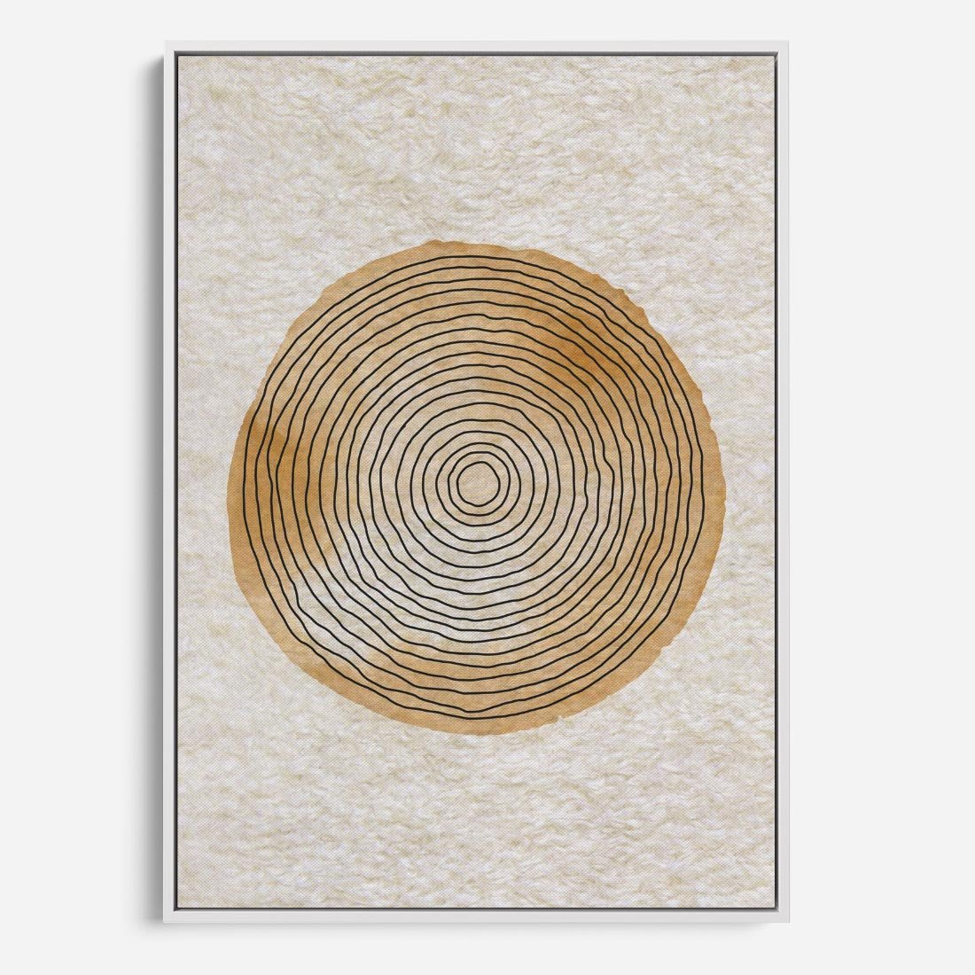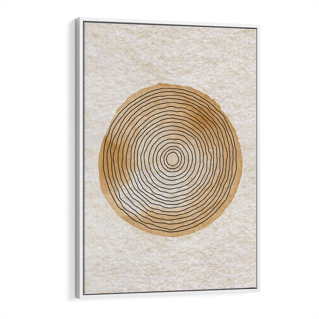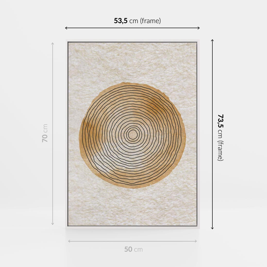 Obraz w ramie 50x70 - Zapisane w promieniach słońca - beżowe strukturalne tło, koła - rama biała