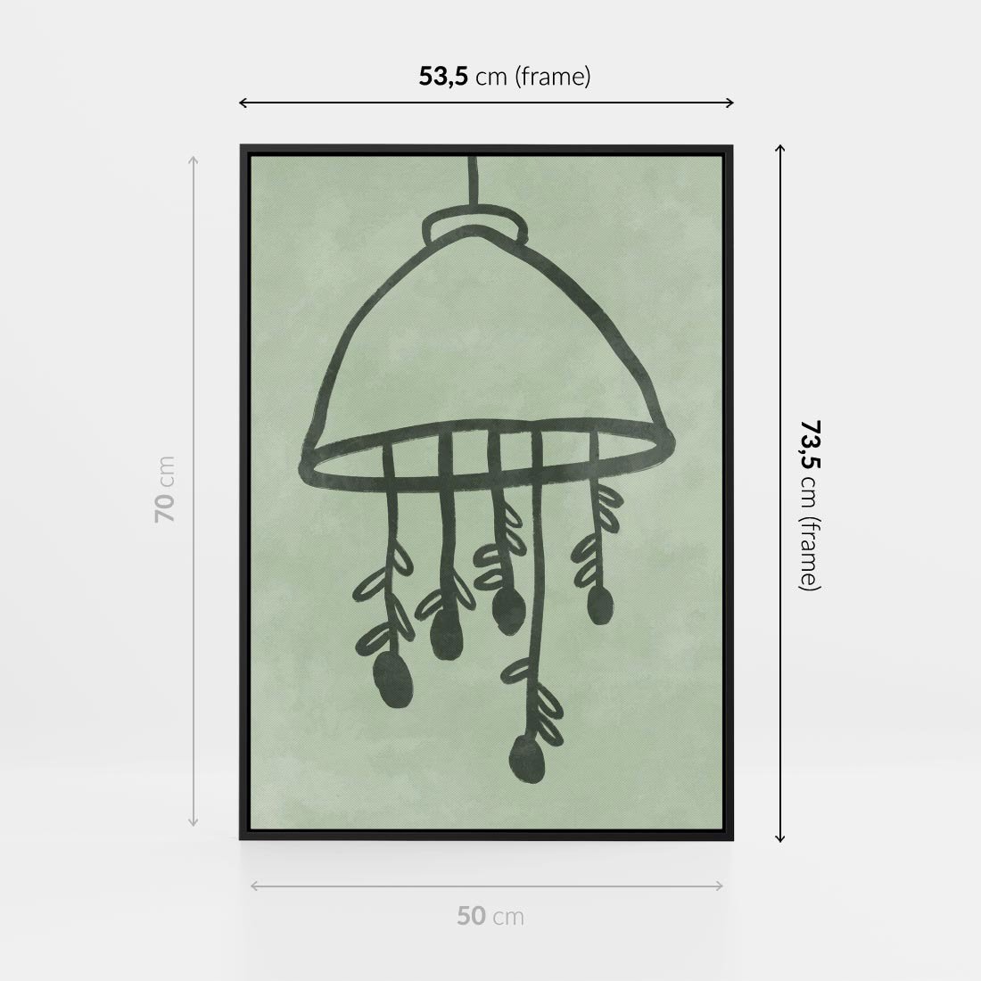 Obraz w ramie 50x70 - Zieleń Inspirującego Spokoju - plakat z abstrakcyjną zieloną lampą, skandynawski design - rama czarna