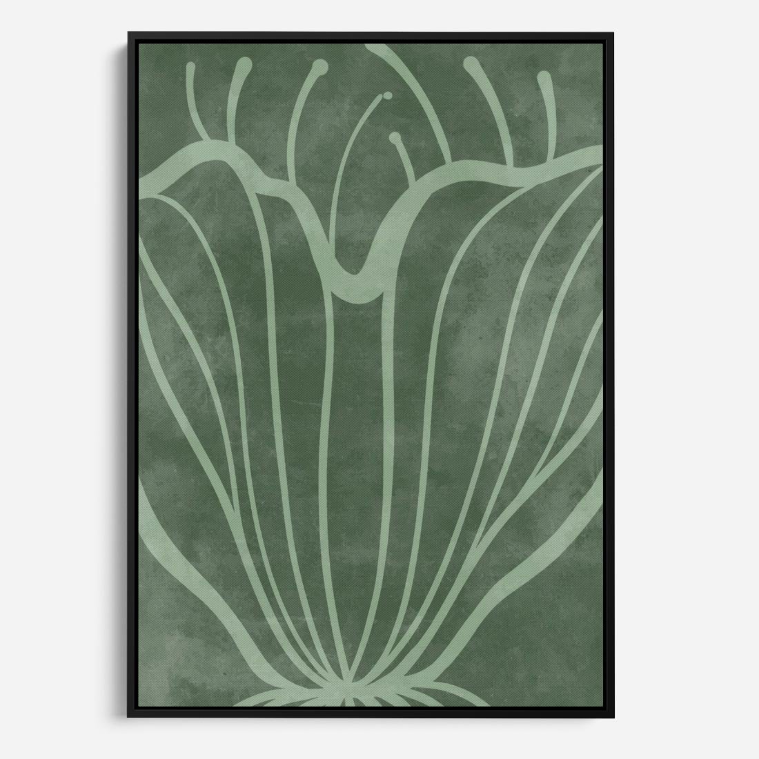Ożywiający zielony plakat, zainspirowany roślinami, doskonale wpisuje się w minimalistyczne i nowoczesne wnętrza. Jego subtelne wzory dodają przyjemnej atmosfery.