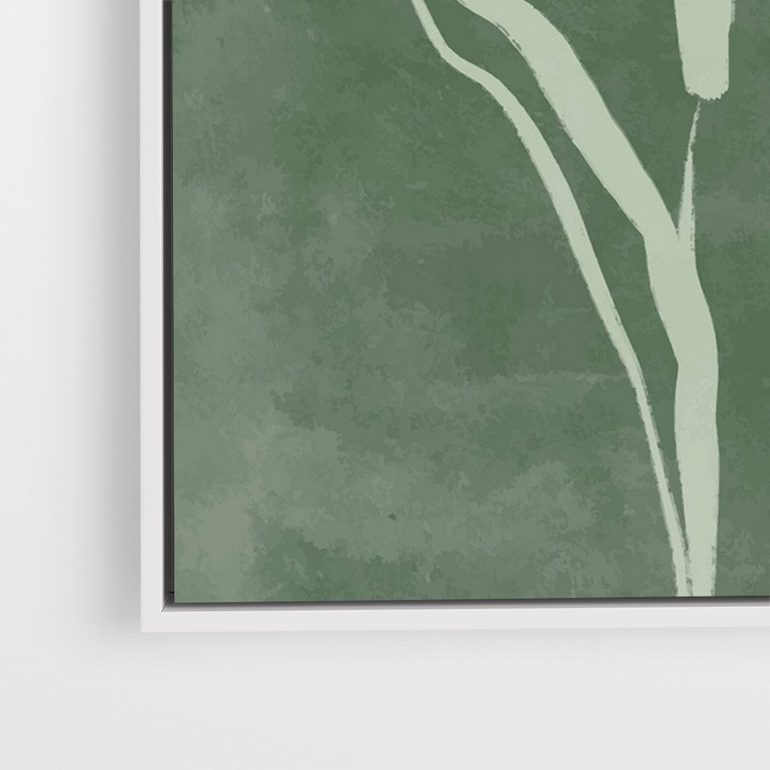 Obraz w ramie 50x70 - Zielony Oddech - zielona abstrakcja, zgaszona zieleń - rama biała