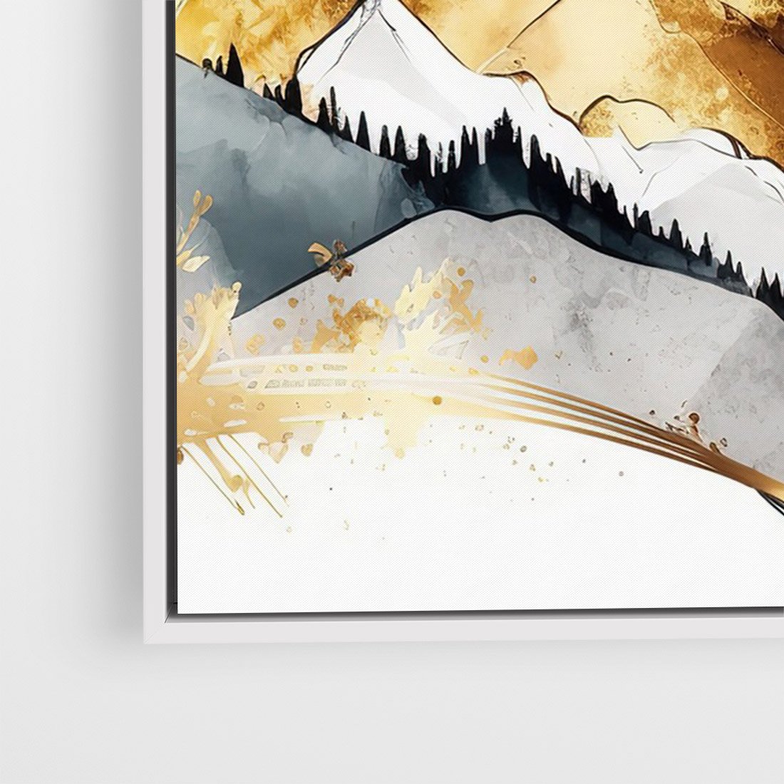 Obraz w ramie 50x70 - Złote Góry - akwarela, graficzne góry - rama biała