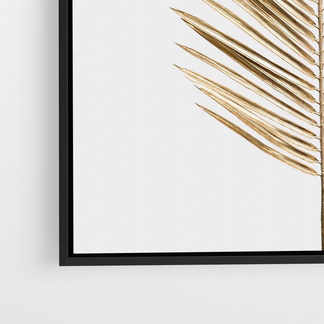 Obraz w ramie 50x70 - Złoty blask palmowego liścia - złota, palma - rama czarna