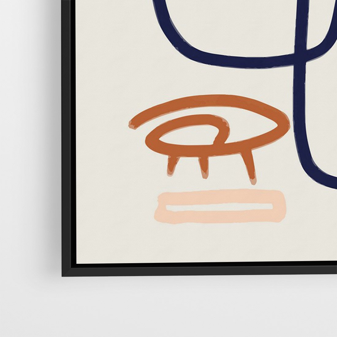 Obraz w ramie 70x100 - Abstrakcyjne Mrugnięcie - abstrakcja w stylu picasso, beżowe tło - rama czarna