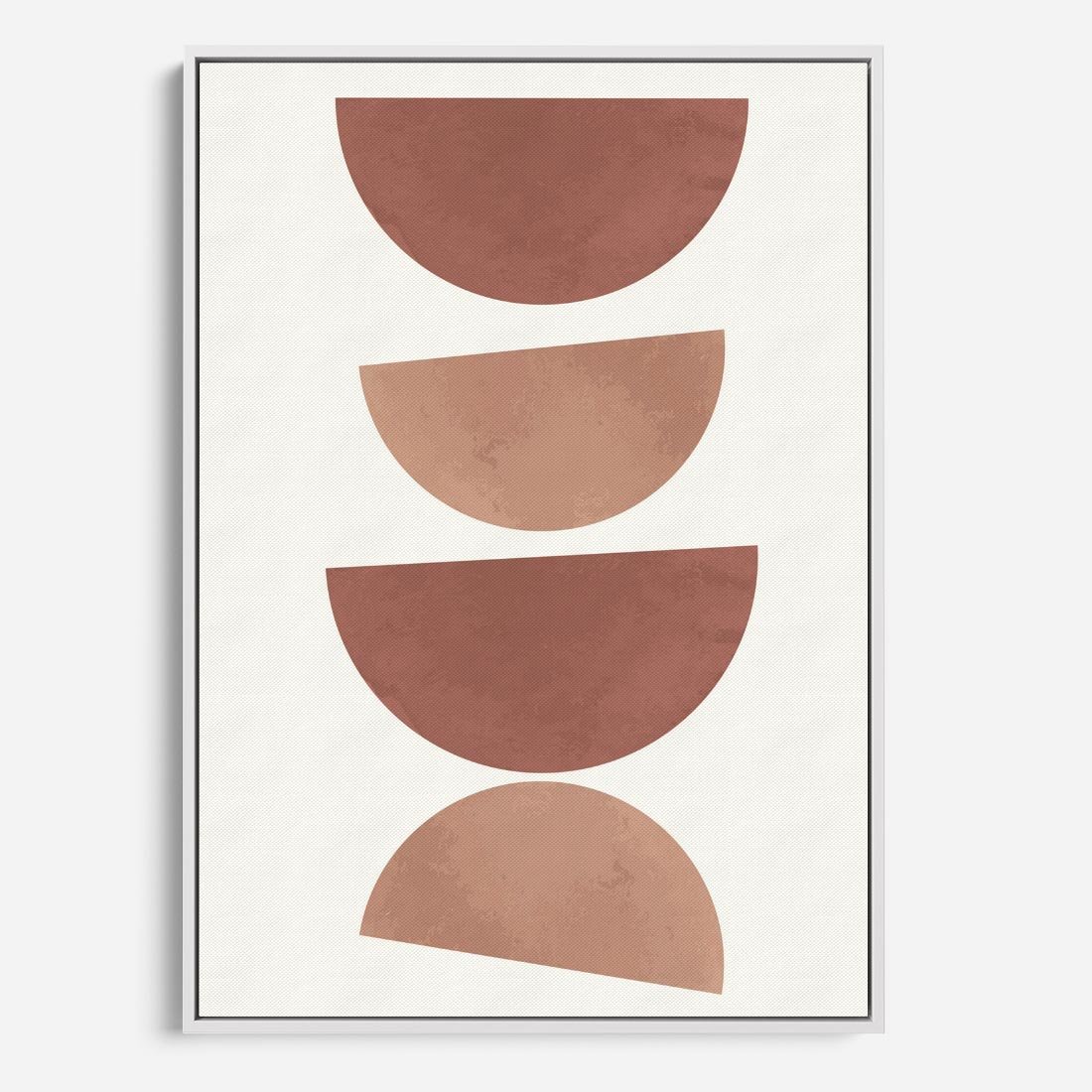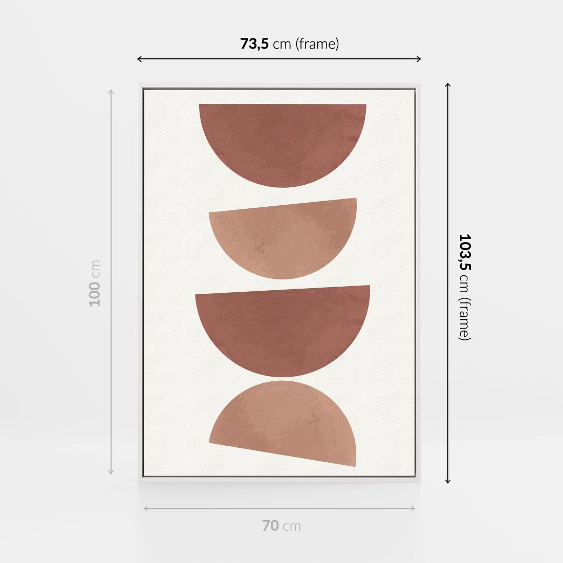 Ten obraz przedstawia abstrakcyjne geometryczne kształty w stonowanych odcieniach brązu i beżu. Doskonale wpasuje się w minimalizm, boho styl i nowoczesne wnętrza.