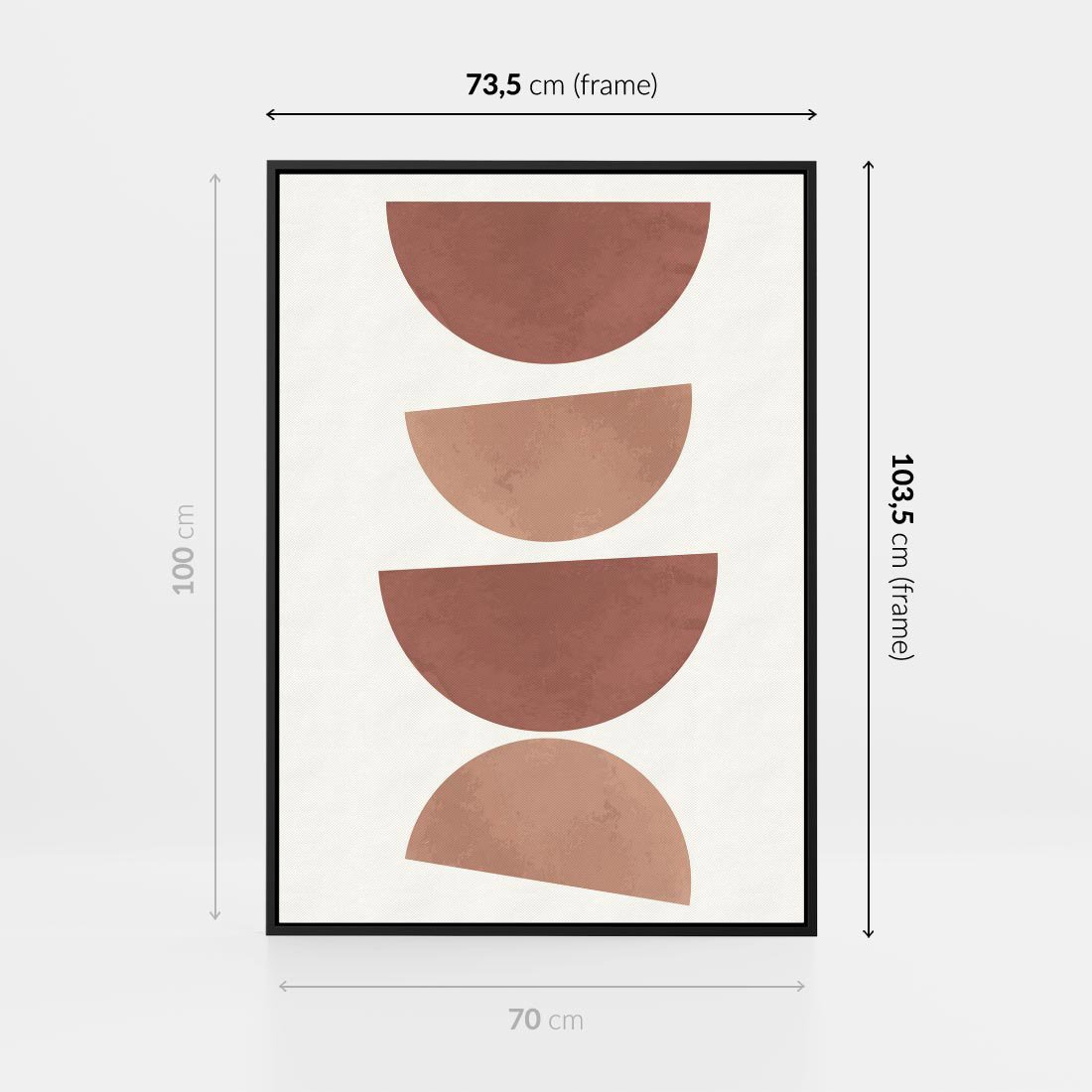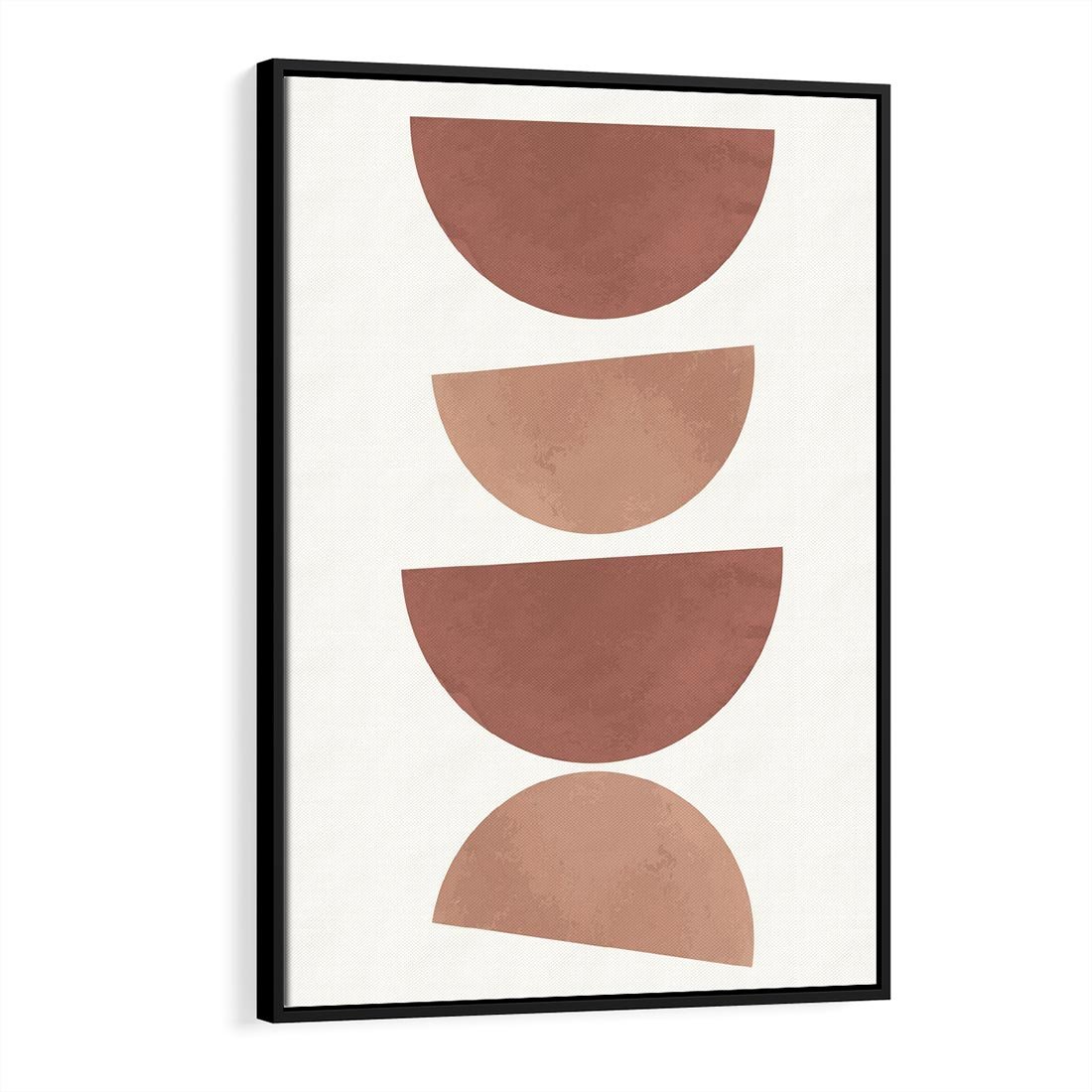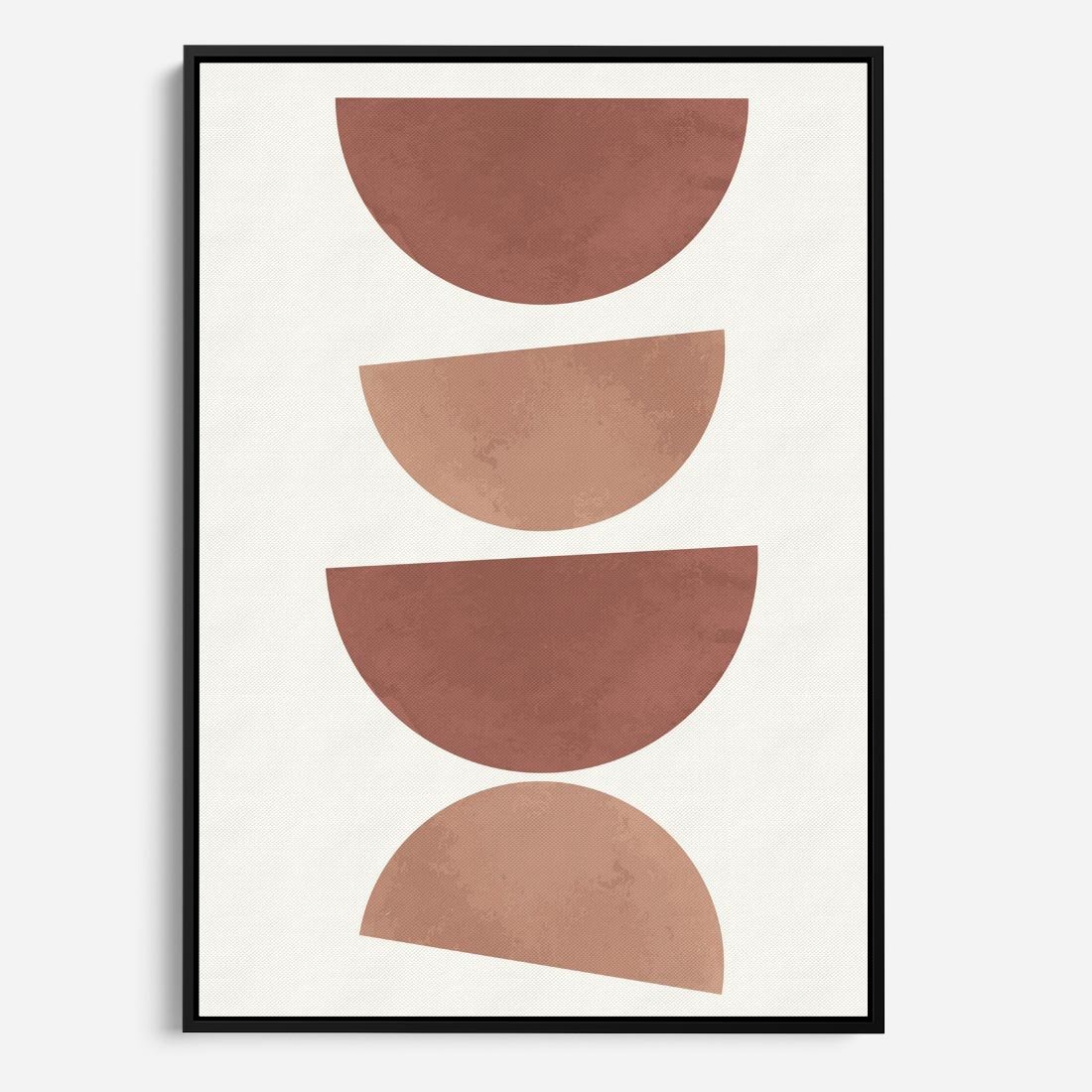 Ten obraz przedstawia abstrakcyjne geometryczne kształty w stonowanych odcieniach brązu i beżu. Doskonale wpasuje się w minimalizm, boho styl i nowoczesne wnętrza.
