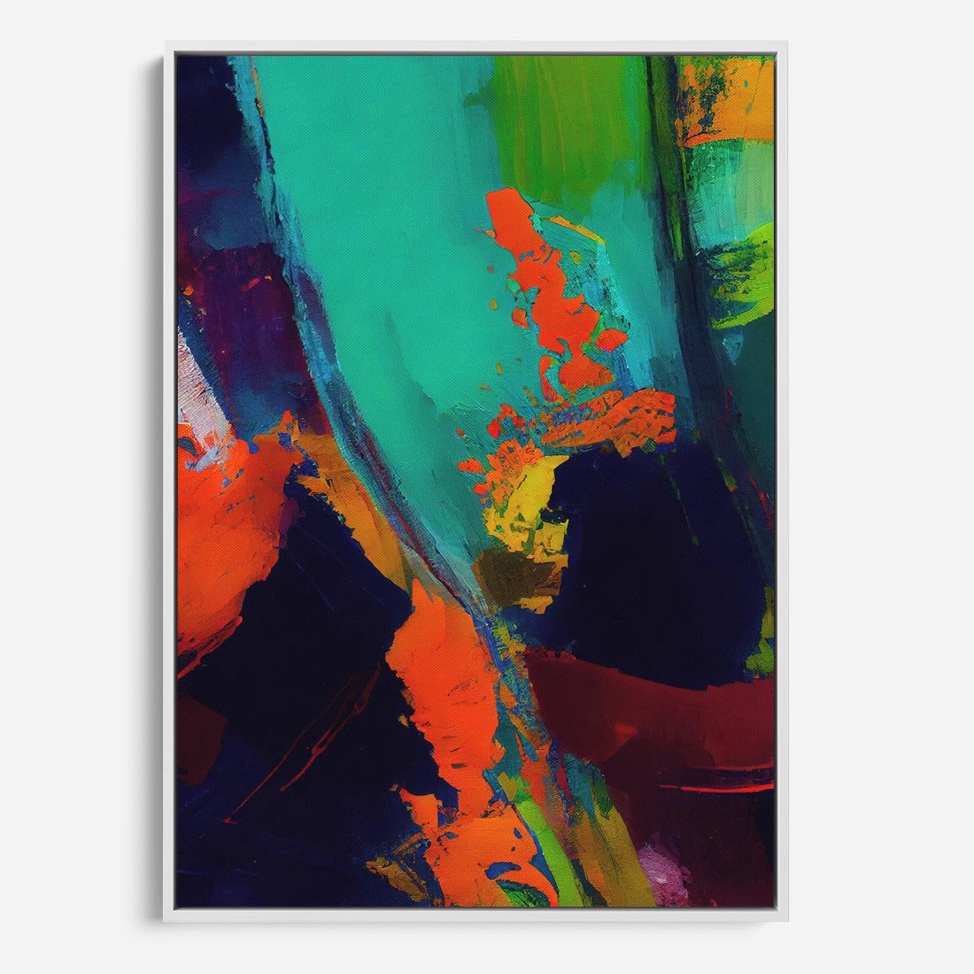 Obraz w ramie 70x100 - Abstrakcyjne wizje czasu - żywe radosne kolory, plamy kolory - rama biała