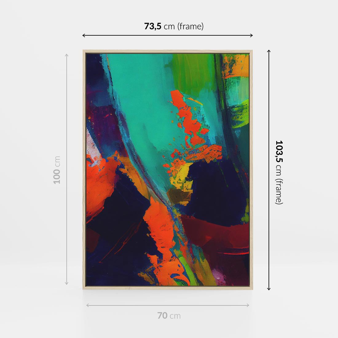 Obraz w ramie 70x100 - Abstrakcyjne wizje czasu - żywe radosne kolory, plamy kolory - rama drewno