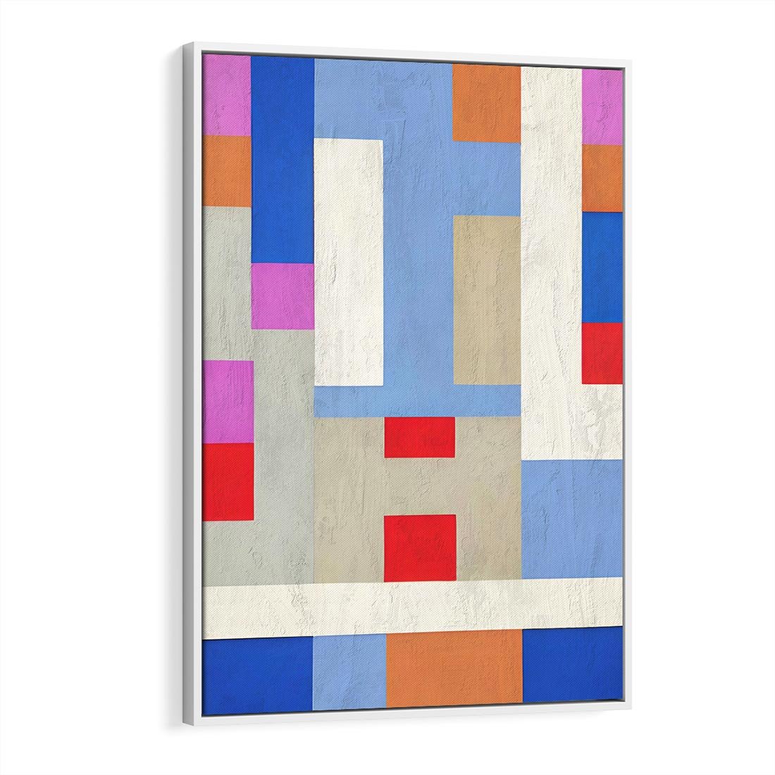 Obraz w ramie 70x100 - Bezczasowe Przenikanie Kształtów - abstrakcyjne geometryczne kształty, olejny obraz - rama biała
