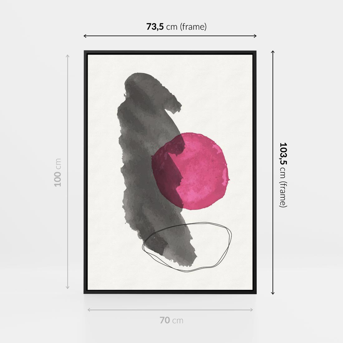 Kreacja abstrakcyjnych, nieregularnych plam w odcieniach czerni, szarości i różu to hołd dla nowoczesnej sztuki. Minimalistyczny design tworzy wyjątkową harmonię i głębię.