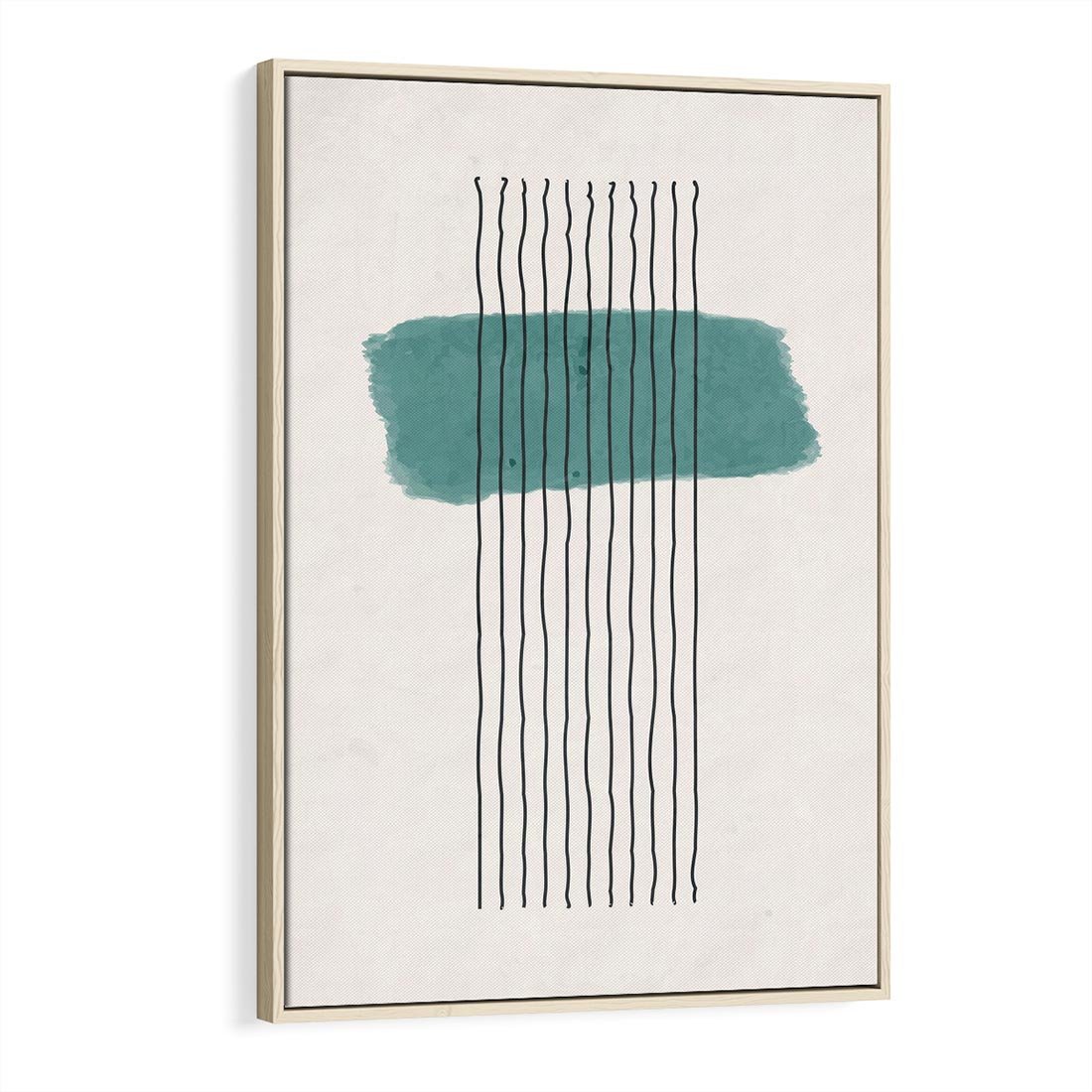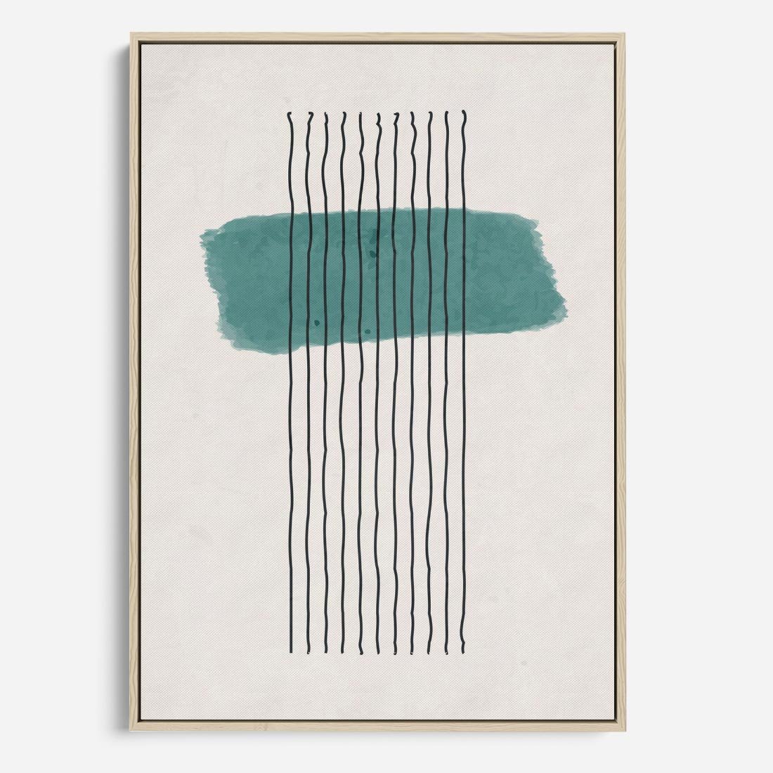 Abstrakcyjna akwarelowa plama w odcieniach turkusu, zdobiąca się nieregularnymi kreskami i dynamicznymi liniami, emanuje minimalistycznym urokiem i wyjątkową energią.