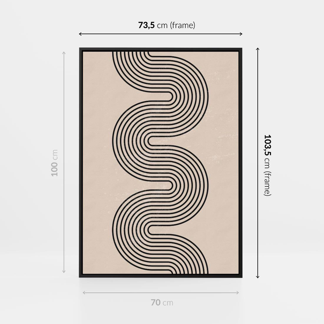 Nasz plakat to abstrakcyjne linie w geometrycznym układzie, wykonane z czarnych linii na spokojnym beżowym tle. To nowoczesne dzieło sztuki wprowadza do Twojej przestrzeni dynamiczny wzór i wyrafinowany minimalizm, doskonale pasując do nowoczesnych wnętrz.