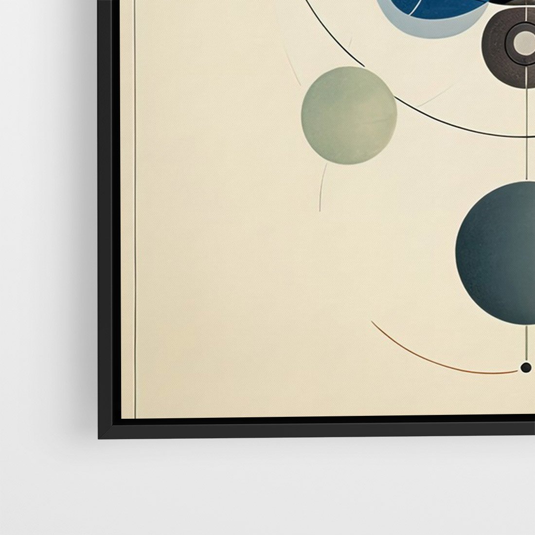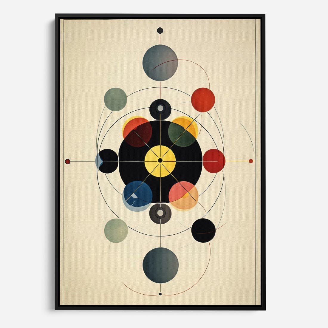 Ta abstrakcyjna geometryczna kompozycja zachwyca wyrazistymi kołami, dynamicznymi liniami i żywymi kolorami, nawiązującymi do charakterystycznego stylu Wassily'ego Kandinsky'ego. To wizualna podróż w świat abstrakcji i emocji.