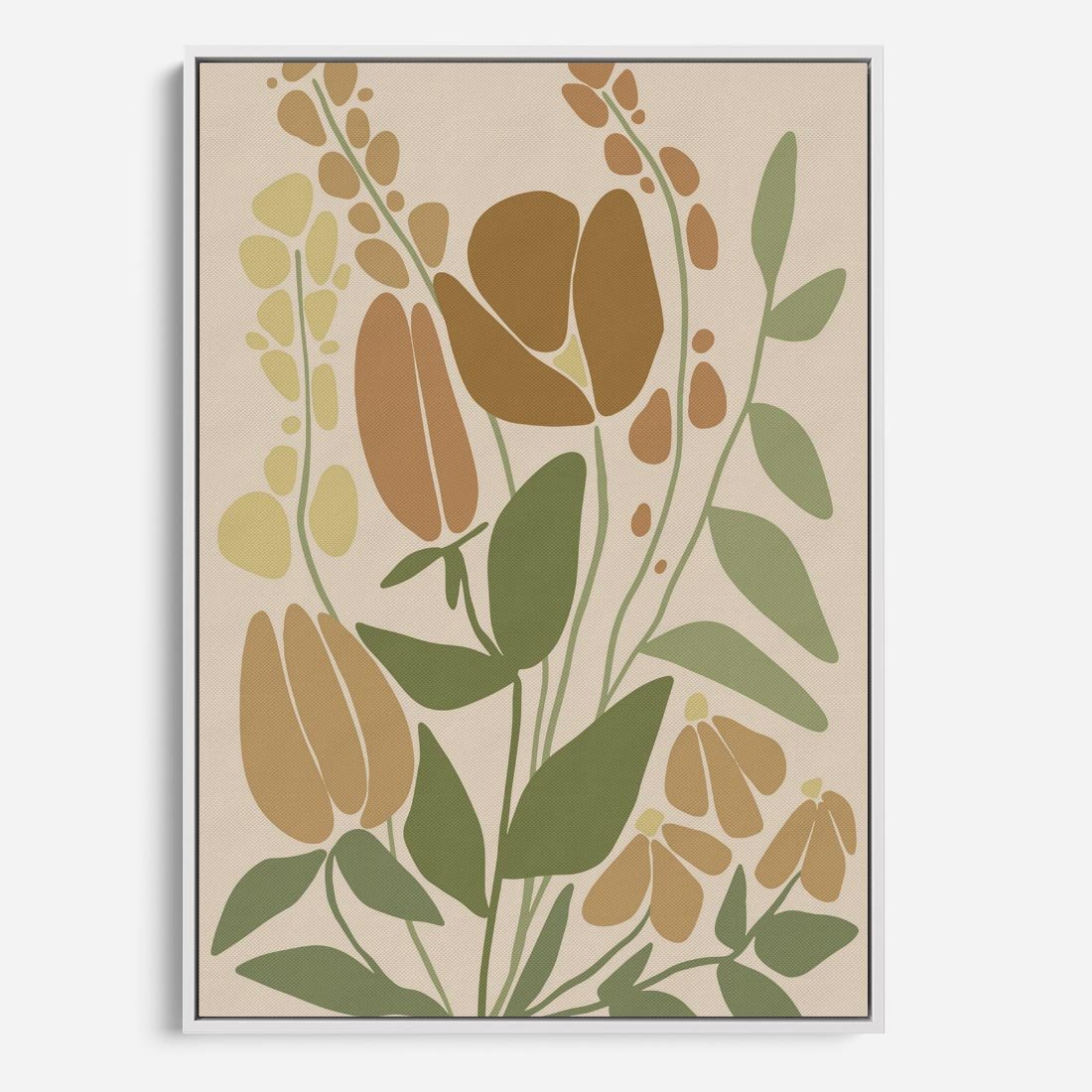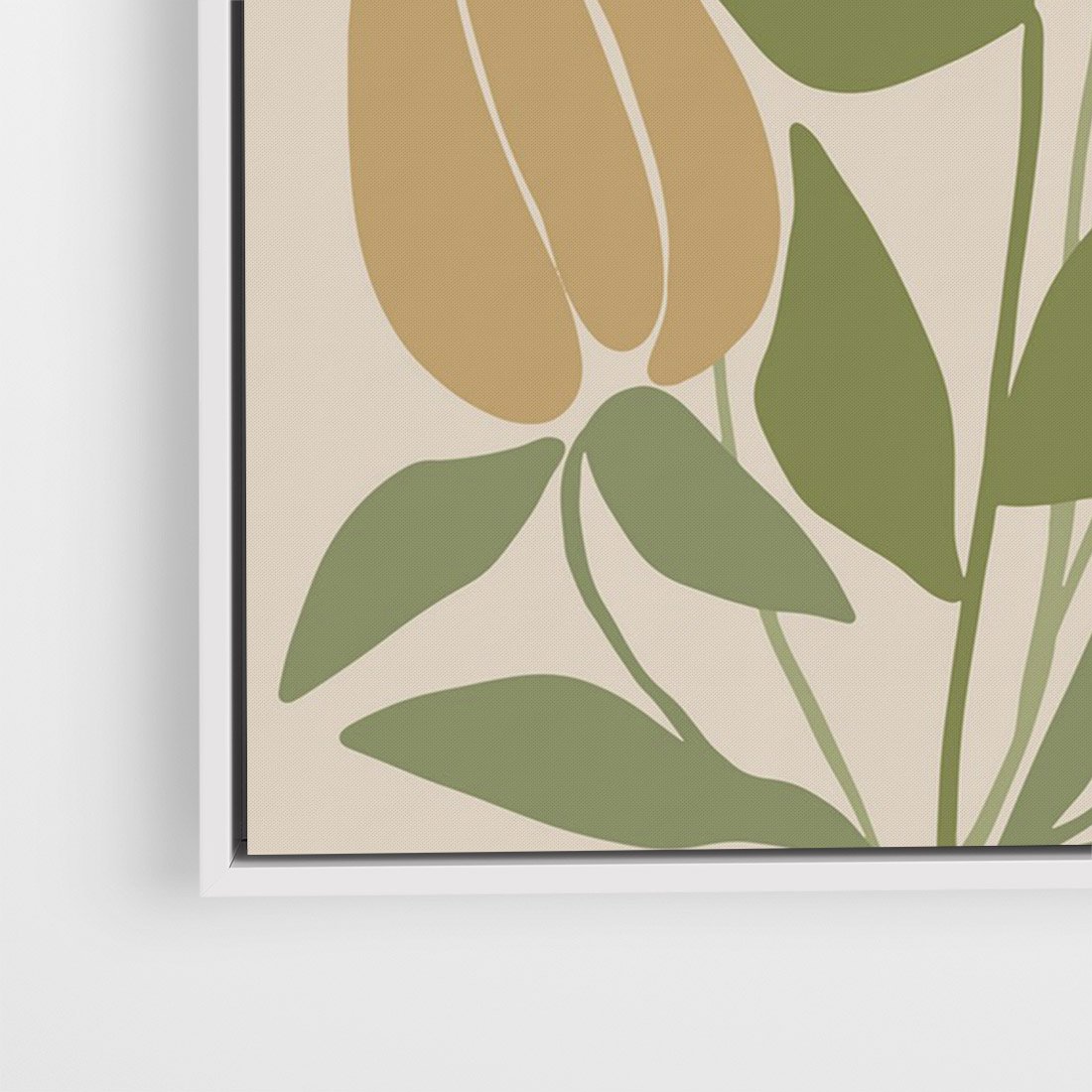 Obraz w ramie 70x100 - Beżowo i Roślinnie - nowoczesny plakat, roślinność - rama biała
