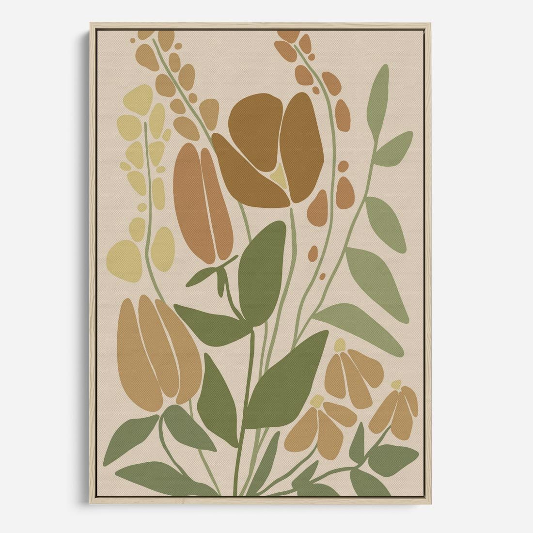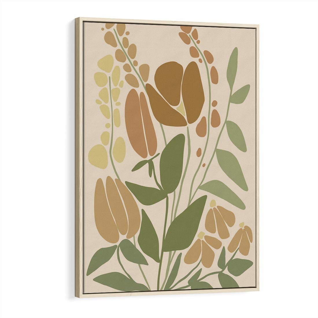 Obraz w ramie 70x100 - Beżowo i Roślinnie - nowoczesny plakat, roślinność - rama drewno
