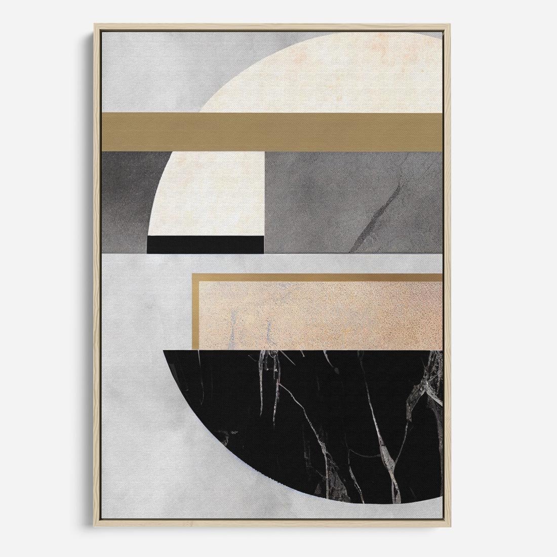 Unikalny obraz, który w nowoczesny sposób łączy geometrię, koła i tekstury szarego marmuru. Subtelne pastele w połączeniu z białymi i czarnymi formami tworzą harmonijną kompozycję, emanującą elegancją i spokojem. To wyjątkowe dzieło sztuki dodaje przestrzeni nowoczesności, zachęcając do odkrywania estetycznych detali.