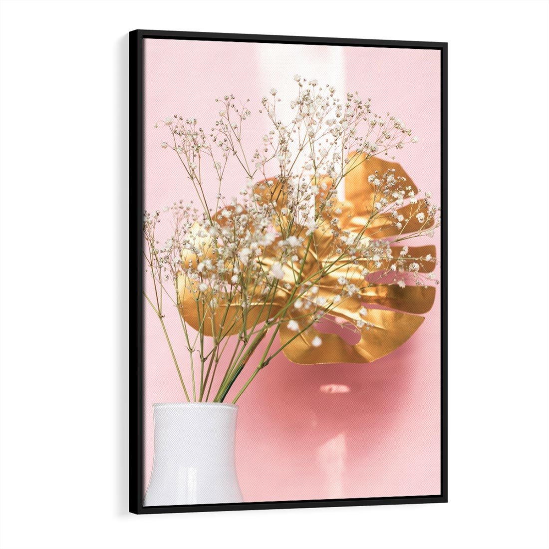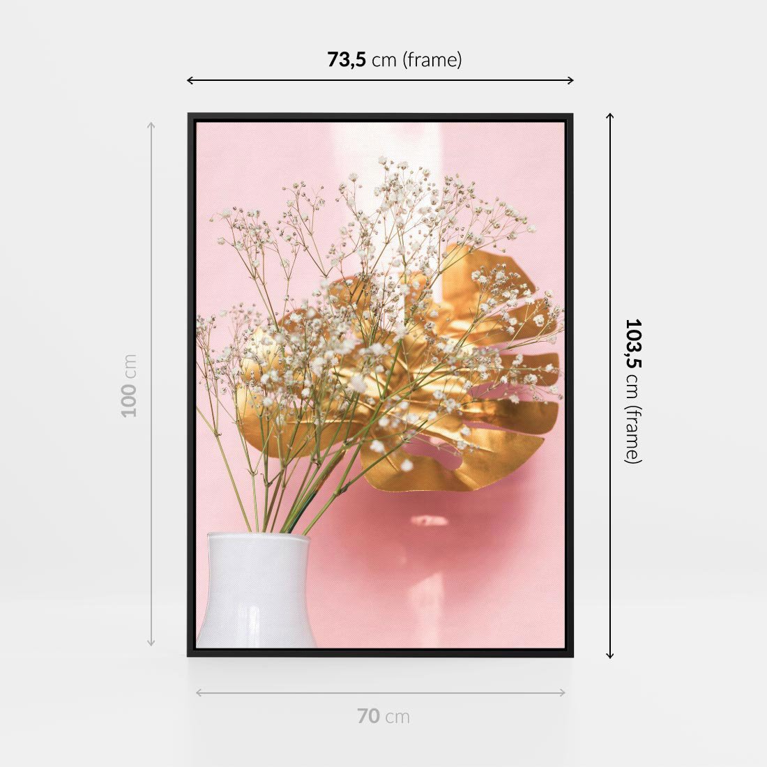 Obraz w ramie 70x100 - Blask Natury - złote, liście - rama czarna