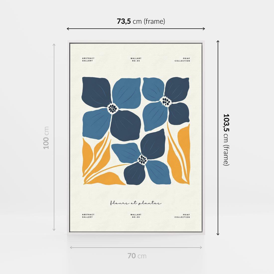 Obraz w ramie 70x100 - Błękitne Nowości - niebieskie kwiaty, nowoczesna sztuka - rama biała
